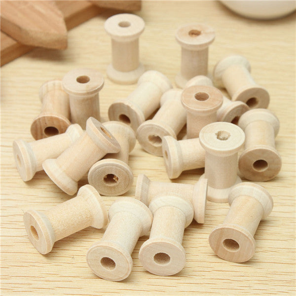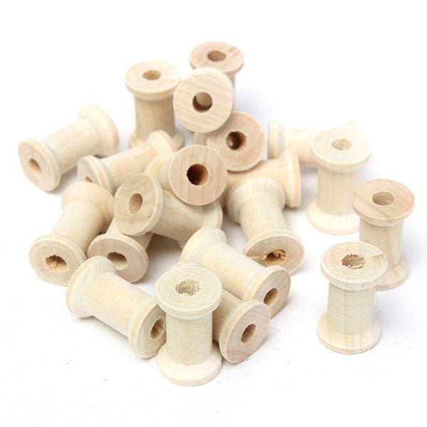 20Pcs Vintage Wooden Sewing Machine Bobbins Spools Reels