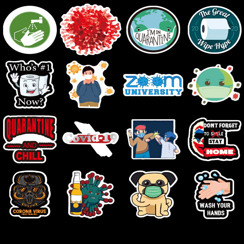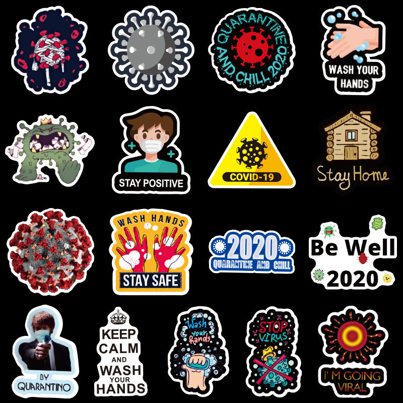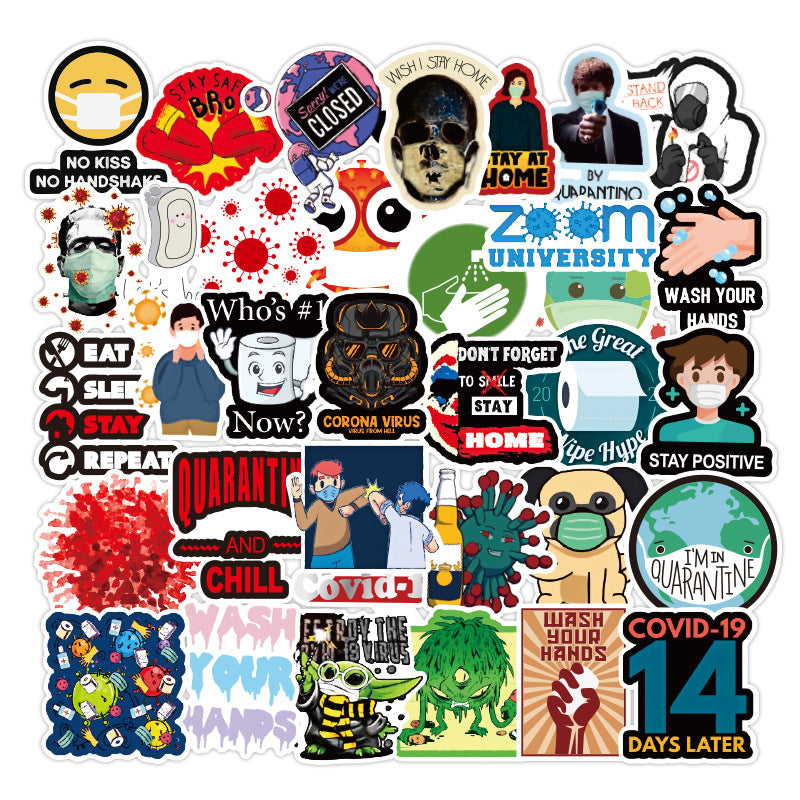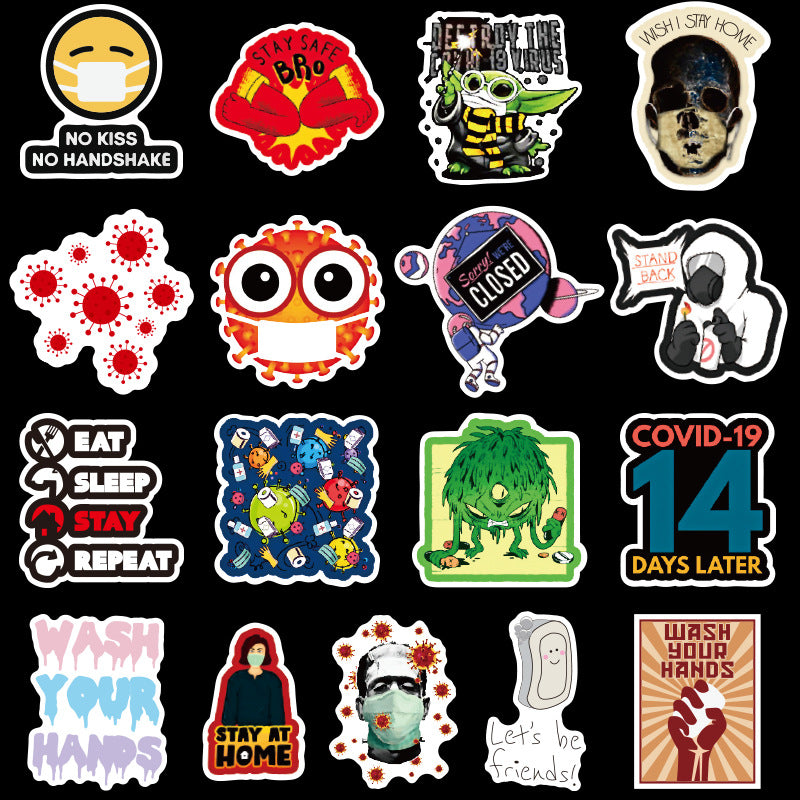 50pcs Epidemic Prevention Window Background Wall Suitcases Computers Healthcare Sticker for Home Floor Decor
