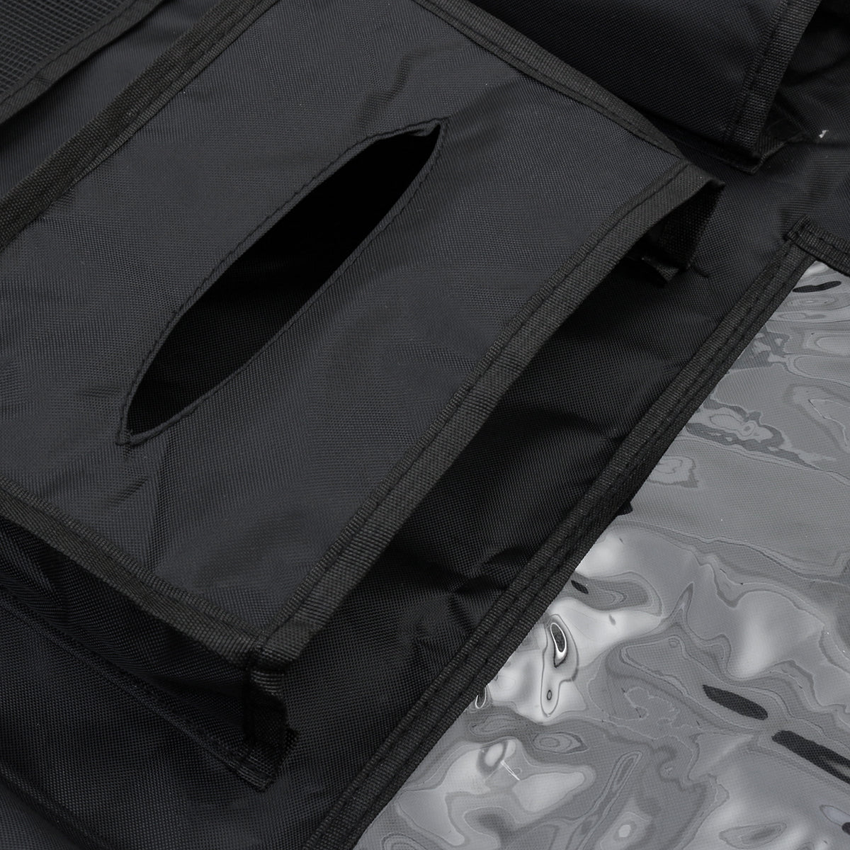 Include 5 organizing pockets for storage of food, kids toys, books, umbrella,help your car being tidy and clean.