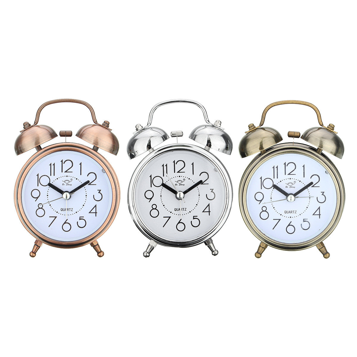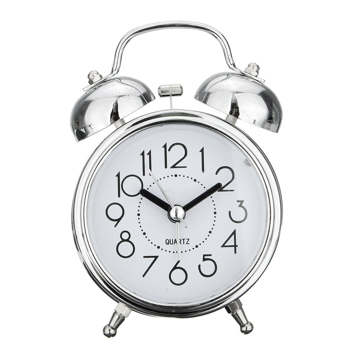 Classic Silent Retro Silent Double Bell Alarm Clock Quartz Movement Mini Bedside Bedroom Night Light Desk Table Clock Home Decor