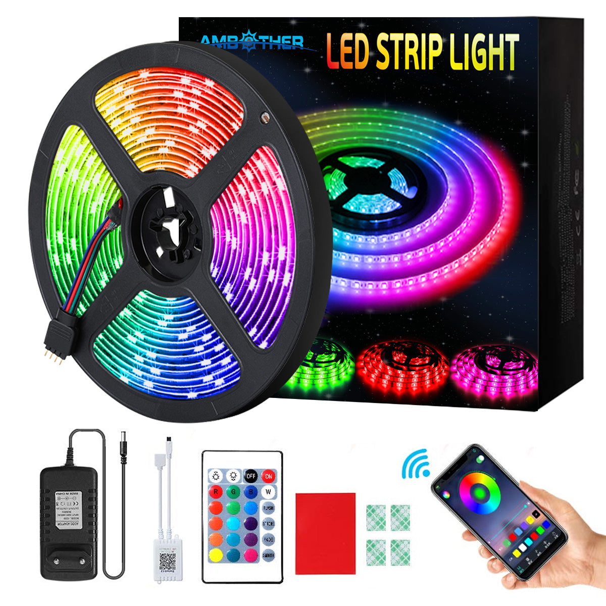 AMBOTHER 5 m Bluetooth Bare Board Light Bar RGB with Screw Buckle 24 Key Remote Control Power Supply with Overcurrent Protection