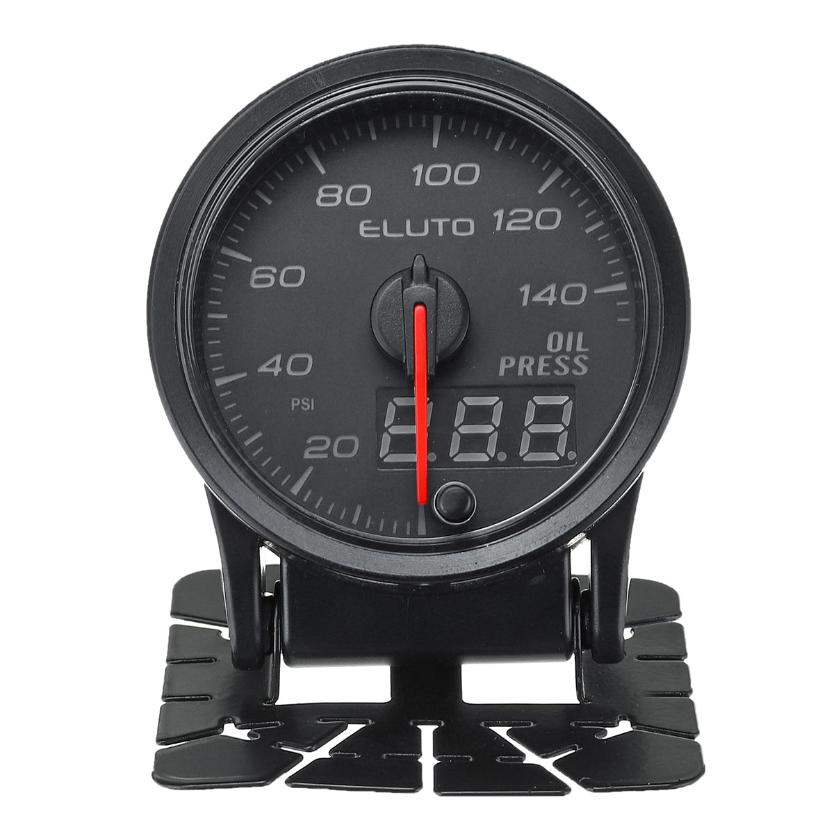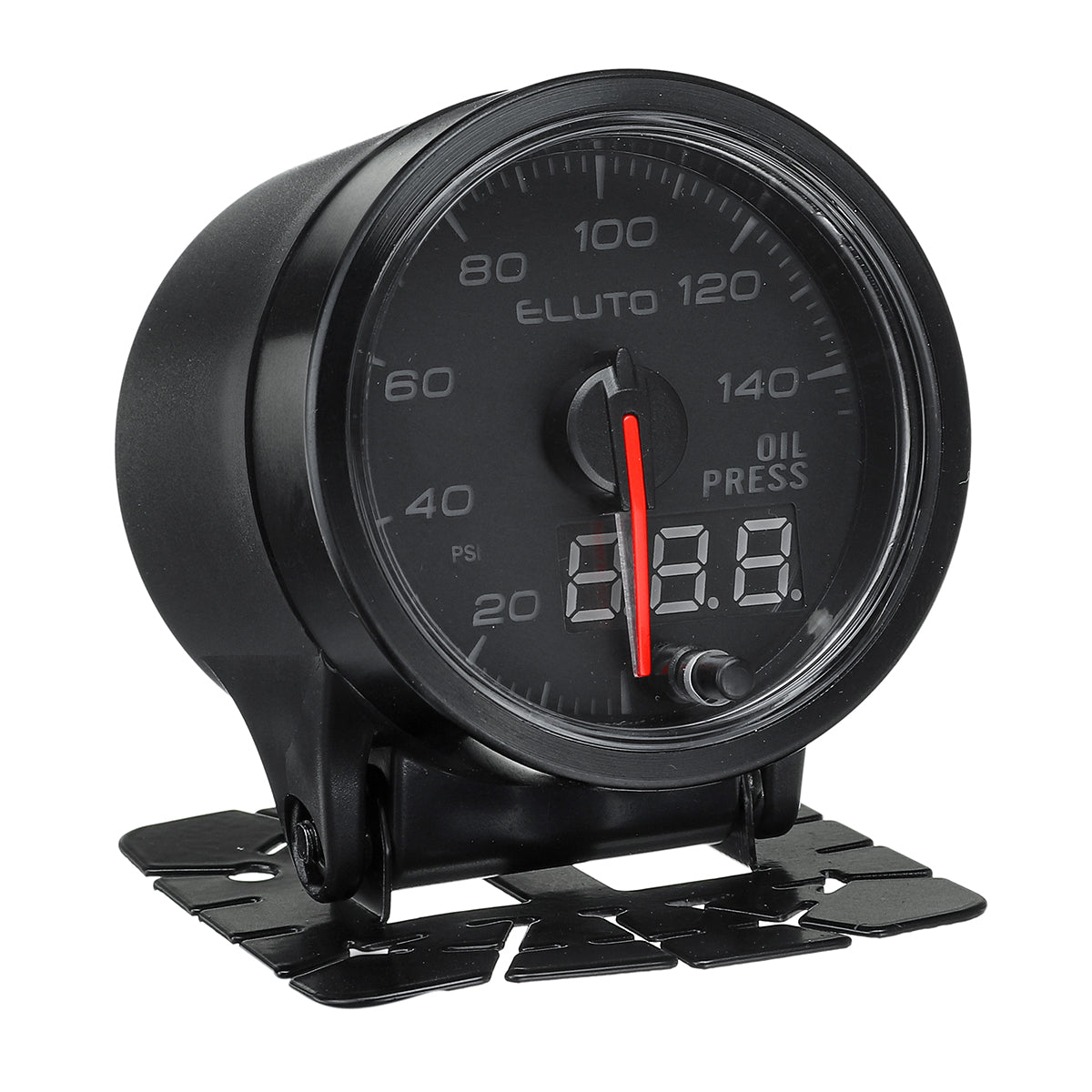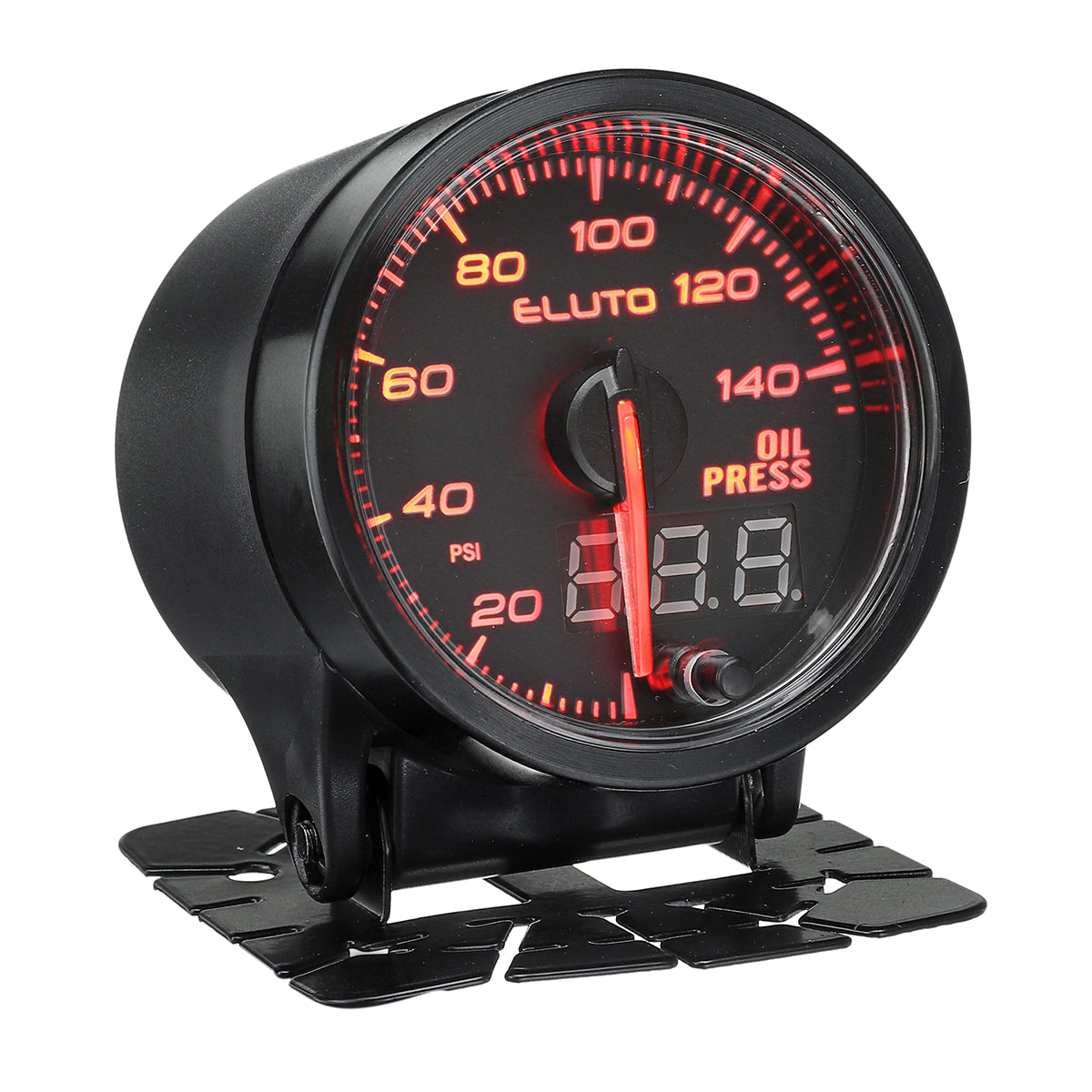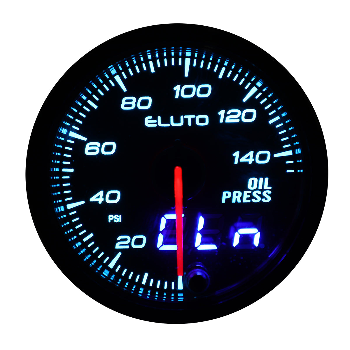 Eluto Universal 2' 52mm 12V Oil Pressure Gauge Meter W/Sensor 10 Color LED Tinted Face PSI