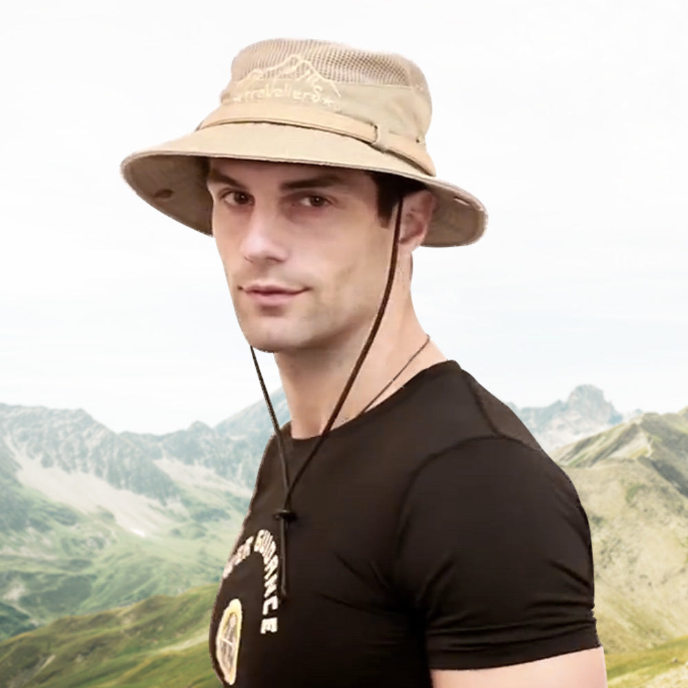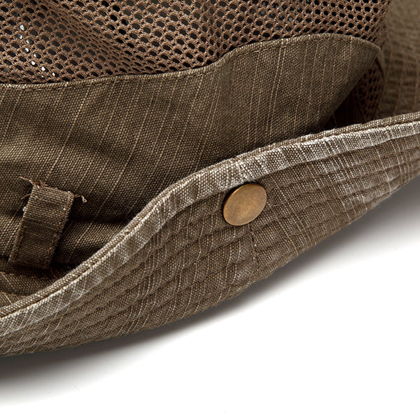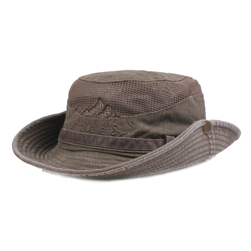 Mens Cotton Embroidery Bucket Hat Outdoor Fishing Hat Climbing Mesh Breathable Sunshade Cap