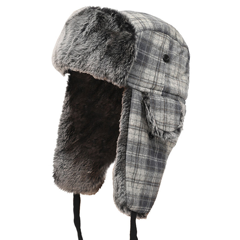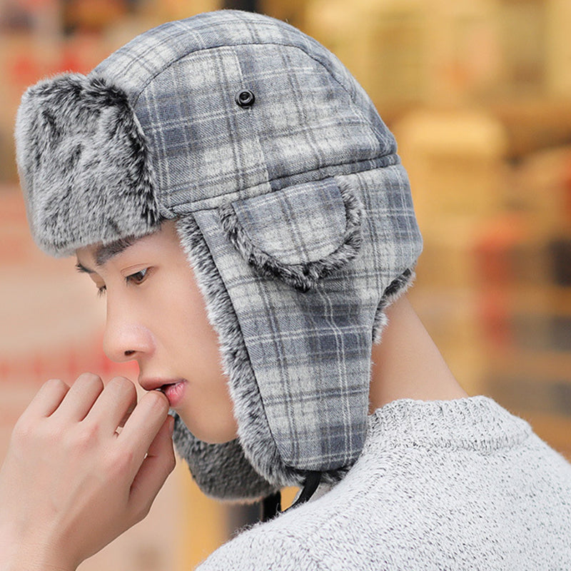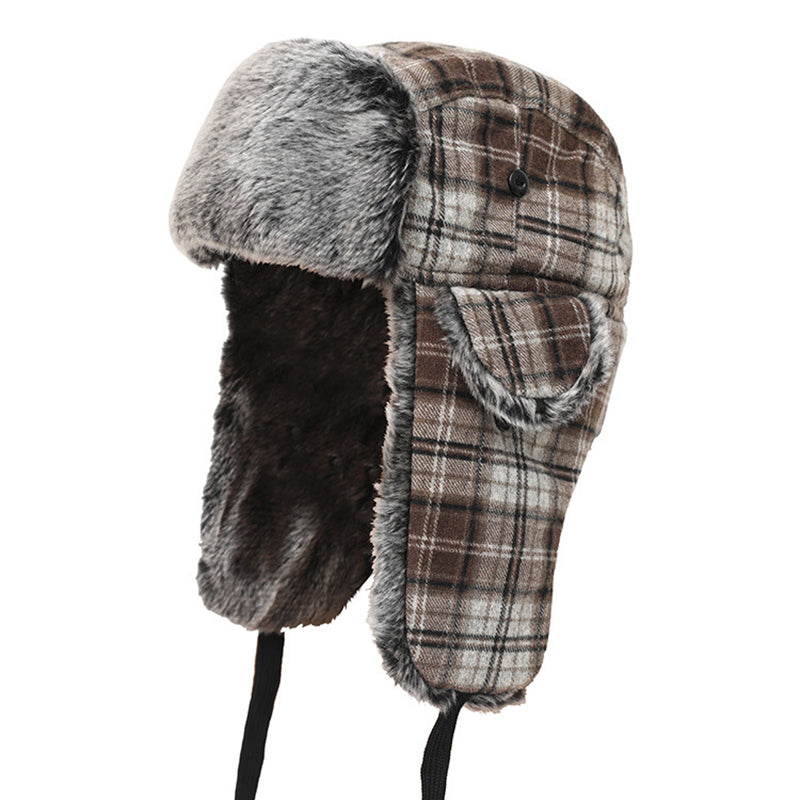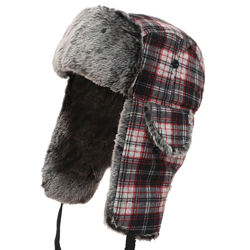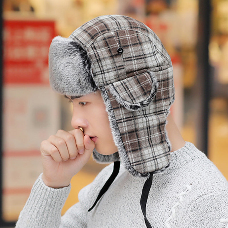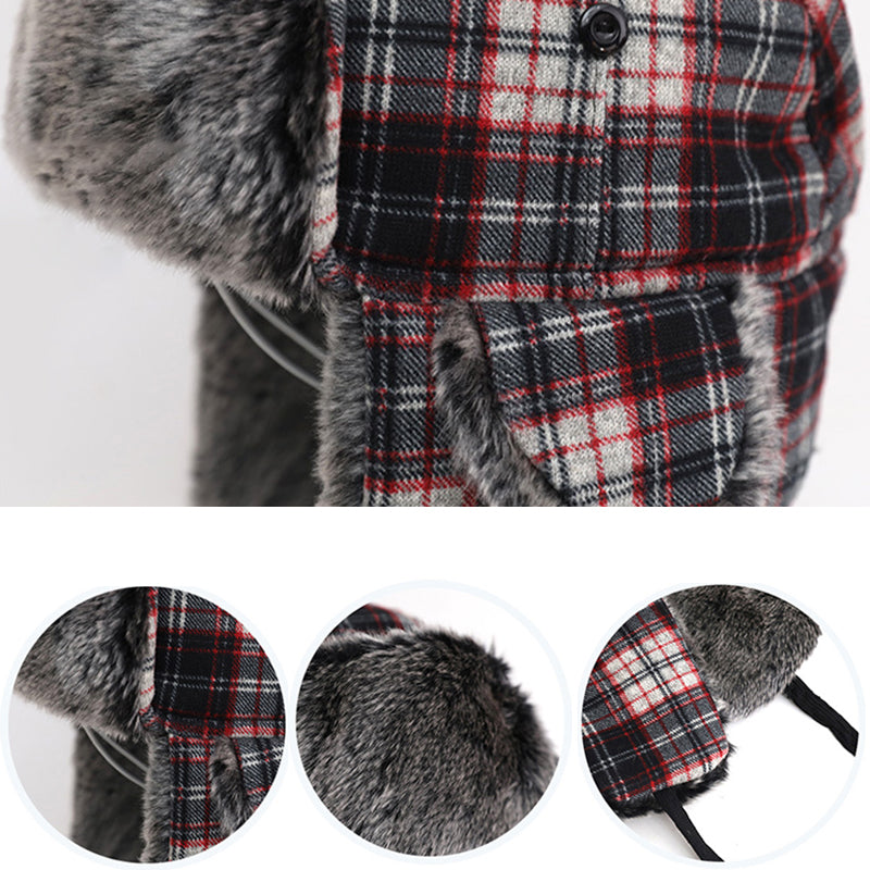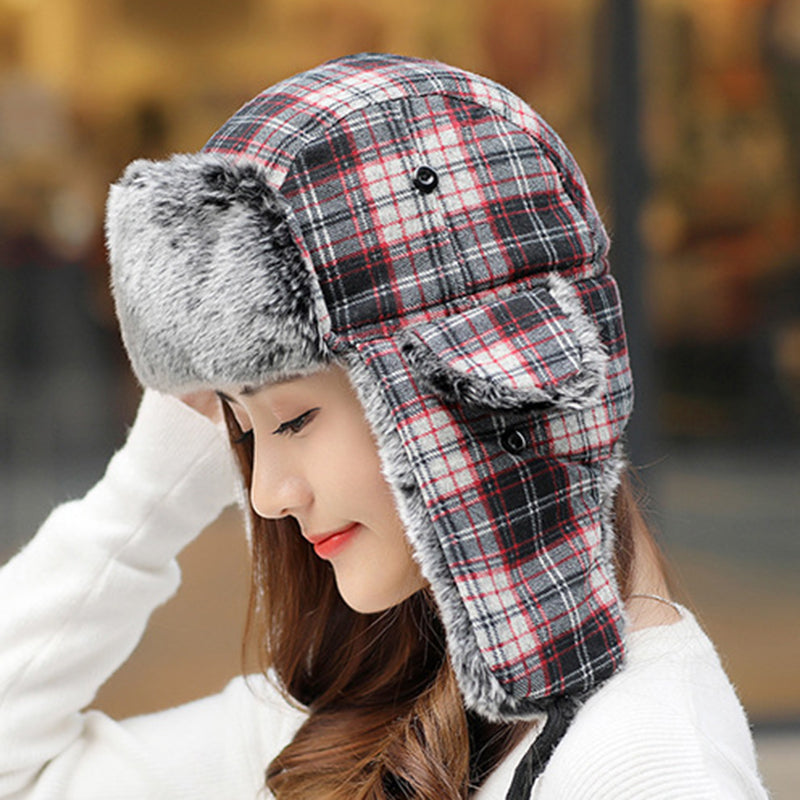 Mens Womens Vogue Plaid Plus Velvet Earmuffs Ushanka Trapper Hat Outdoor Windproof Russian Cap