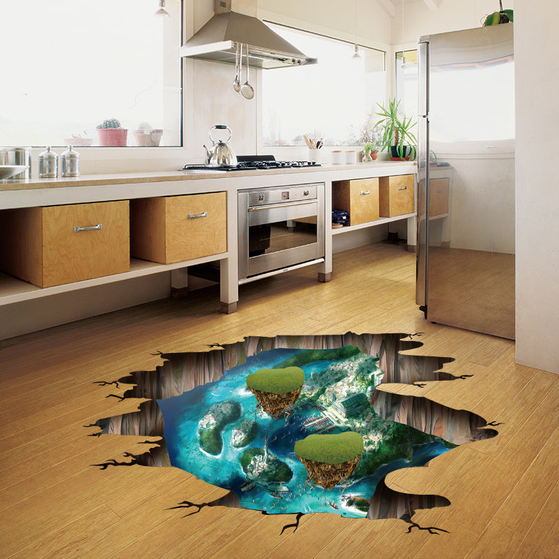Miico Creative 3D Dream Float Sea Island Broken Wall Removable Home Room Decorative Wall Floor Decor Sticker