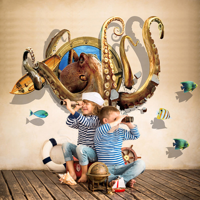 Miico Creative 3D Sea Animals Octopus Frame PVC Removable Home Room Decorative Wall Floor Decor Sticker
