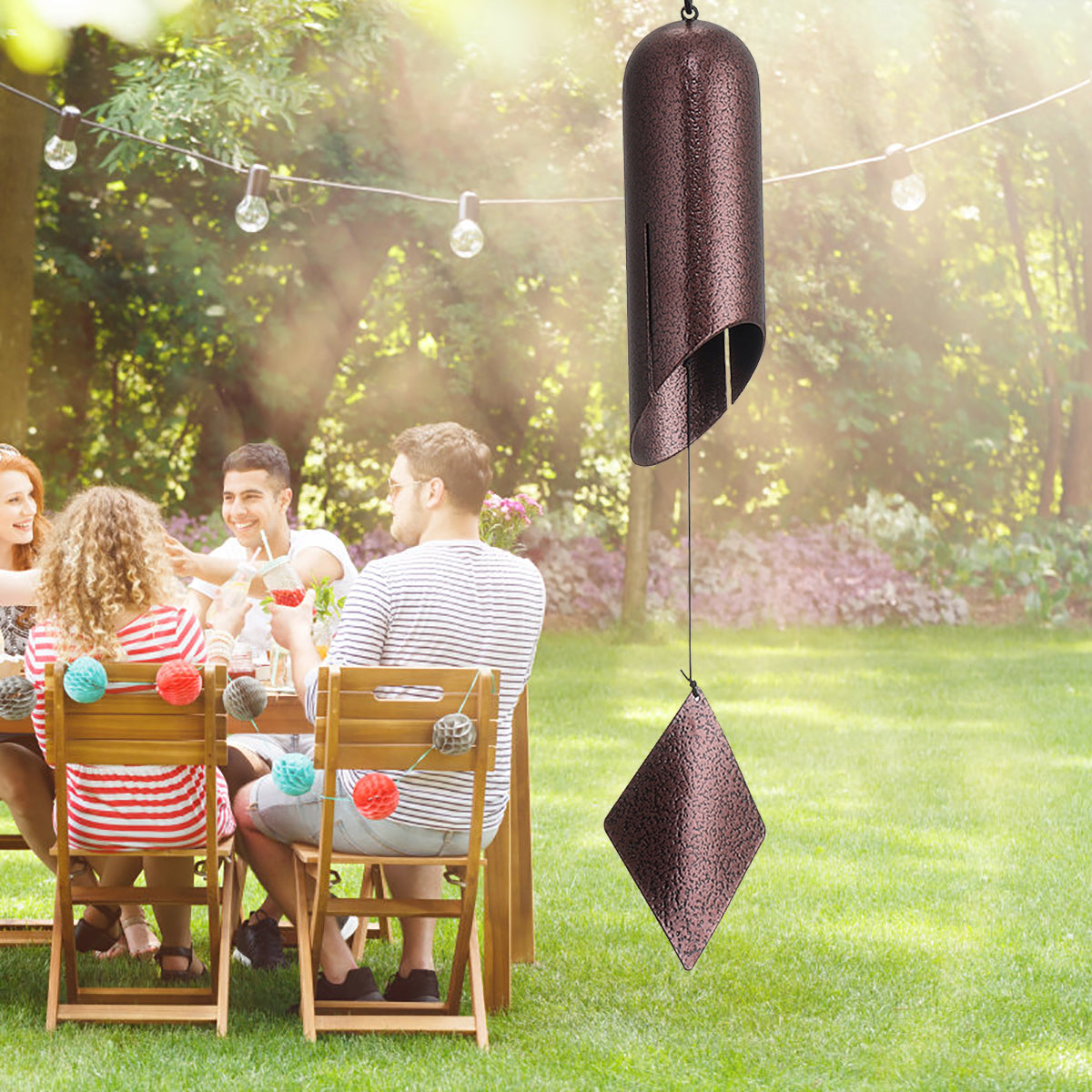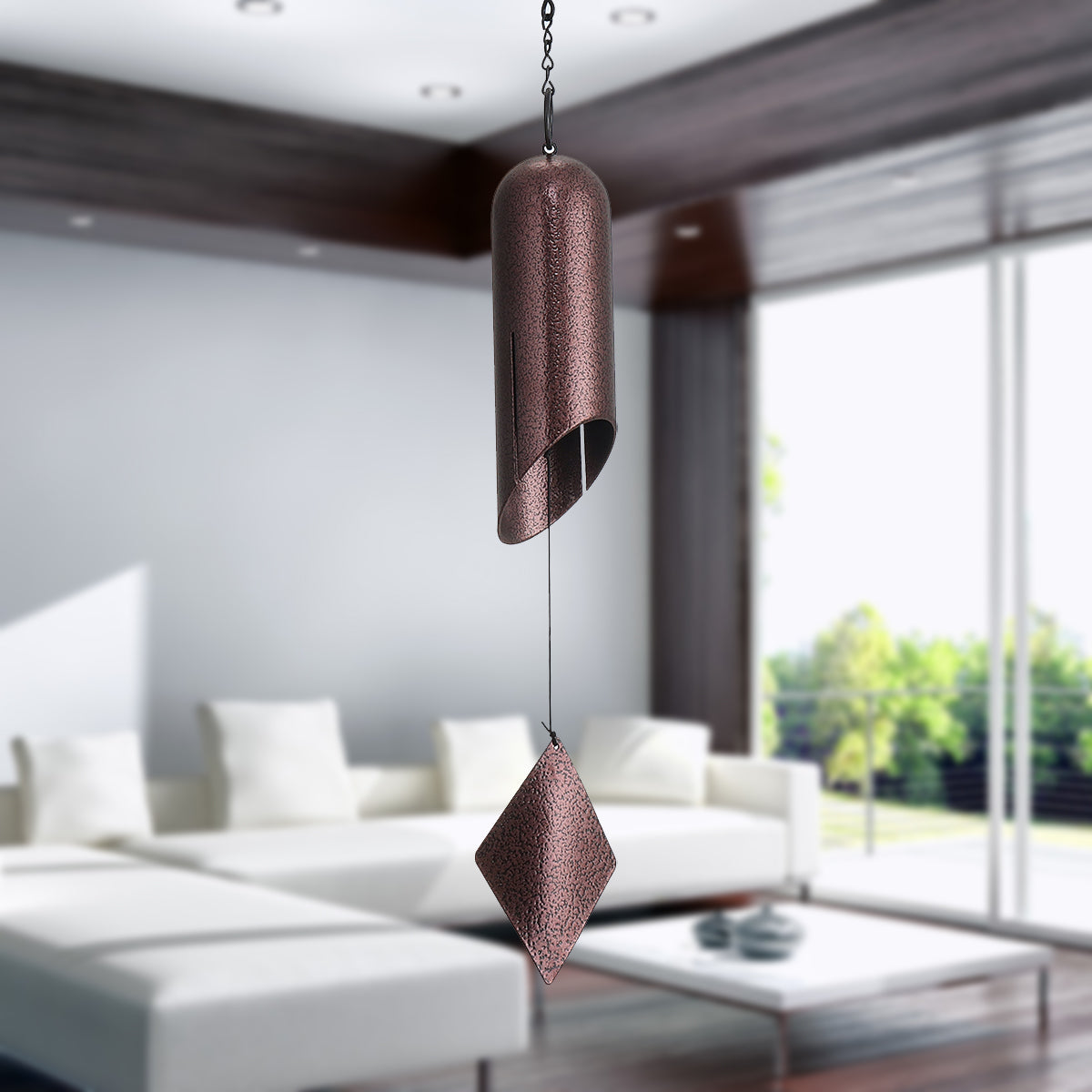 Antiqued copper steel bell and an aluminum wind catcher coated with a handsome, durable finish, so you can enjoy it for years to come; black ash wood clapper