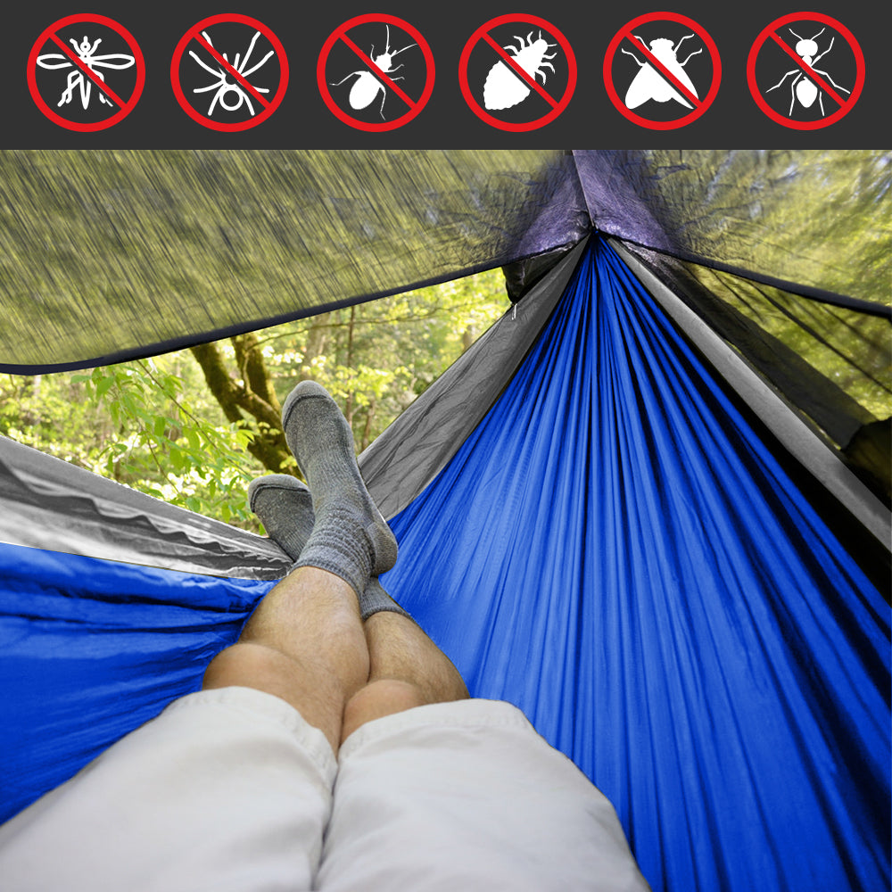Outdoor Camping Lightweight Picnic Hammock with Mosquito Net 1-2 Person Portable Backpack Hammock Sleeping Mattress