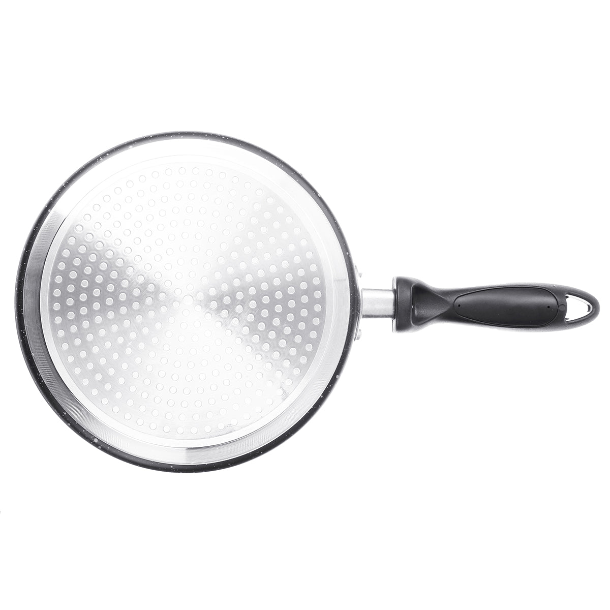 Strengthened pan bottom, and the bottom of the pan is inlaid with honeycomb stainless steel gasket for efficient heat conduction.