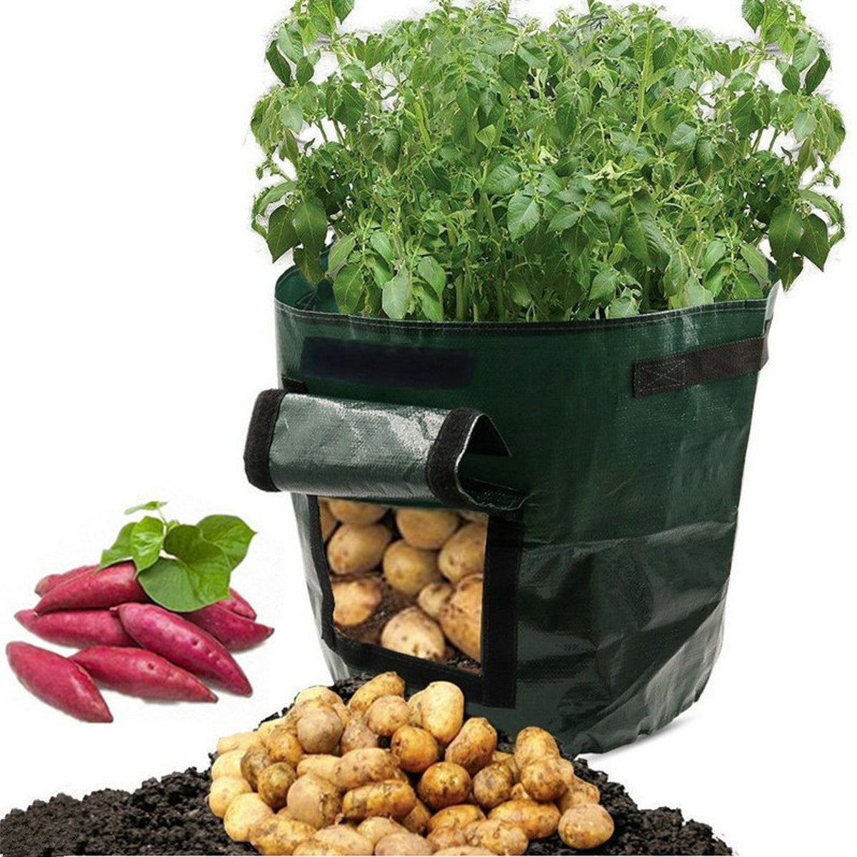 - This planting bag is suitable for planting plants with deep tubers and deep roots: potatoes, fragrant radish, sweet potato, cucumber, loofah, tomato, eggplant, etc.
