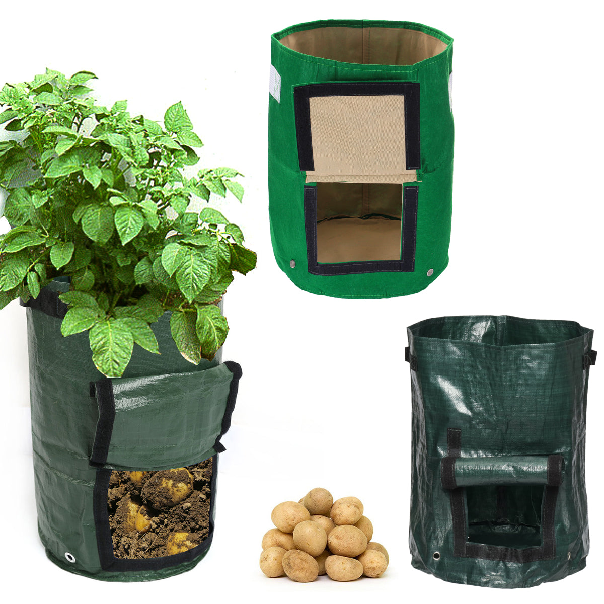 Potato Grow Planter PE Container Bag Pouch Root Plant Growing Pot Side Window