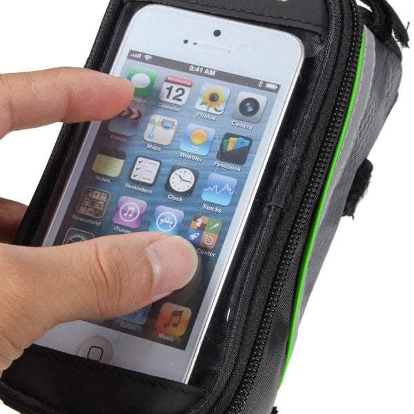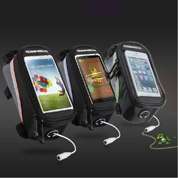 Features: Water resistant polyester Clear PVC window pouch designed for 4.2 inch mobile phone Bike package in acute Angle design, increase the slip in the bottom of the area, make sure the zipper operation is good Increase the headphone jack and audio extension, at the same time solve the problem of headset wire too short, let the music more free, let your journey no longer drab Double zipper '' U ' type design, convenient to take PE cotton filling of the main bag body Both sides have the reflective strip for safe riding in night Suitable for all type bike