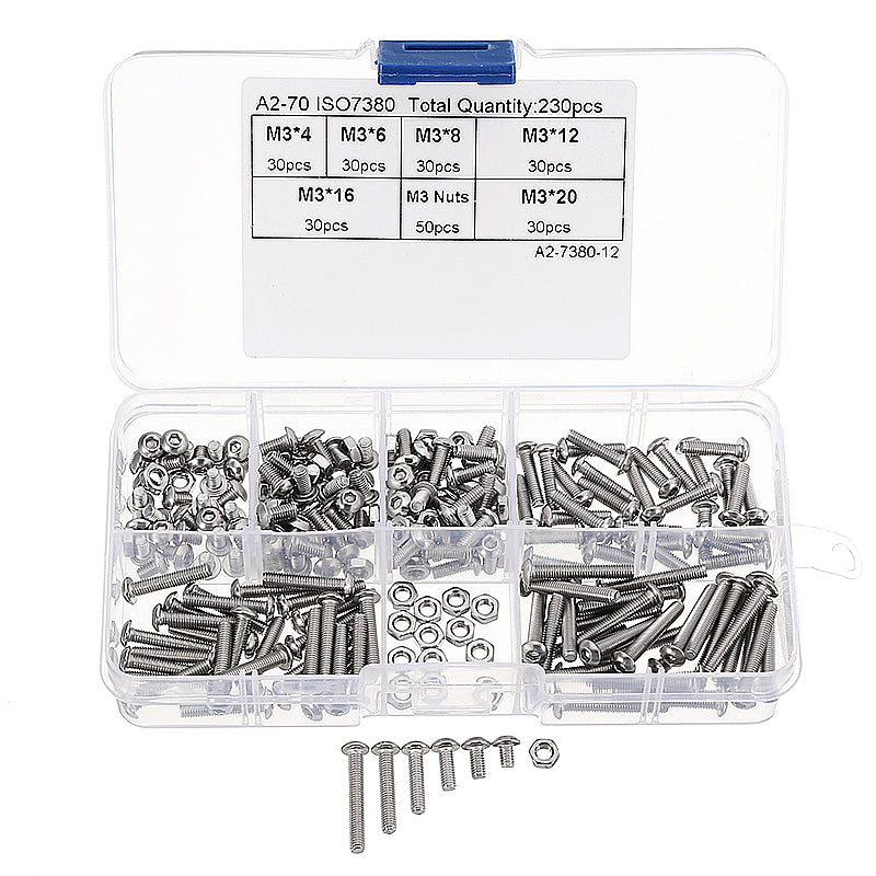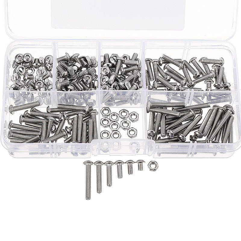 - 180pcs M3 hex socket button head screws and 50pcs M3 nuts.