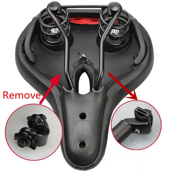 Features: The bottom of the dual-spring design, high elastic damping Punching high-density foam, comfortable touch Microfiber leather, wear-resistant, anti-scratch Inner layer made of fabric with glue points to ensure no slip . Interlayer made of thick soft foam , comfortable, durable. Put it over your existing seat, cinch it up, and hop-on. Suitable for mountain bike. Surface layer is skid and anti abrasion.