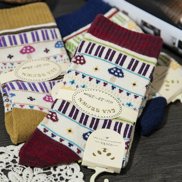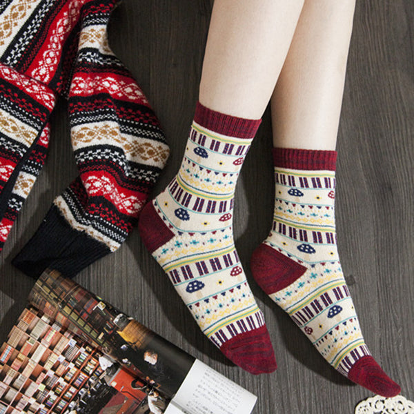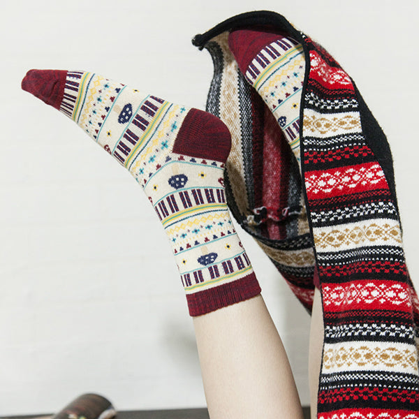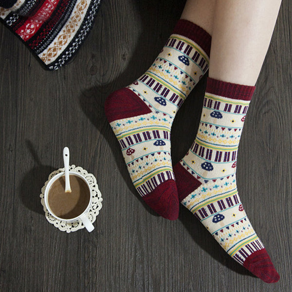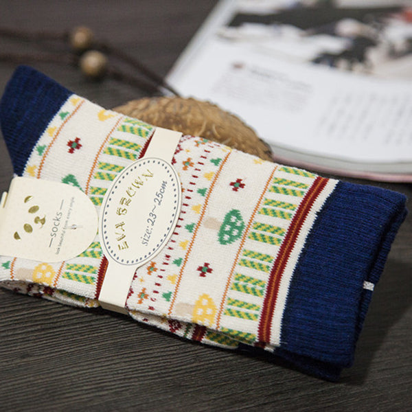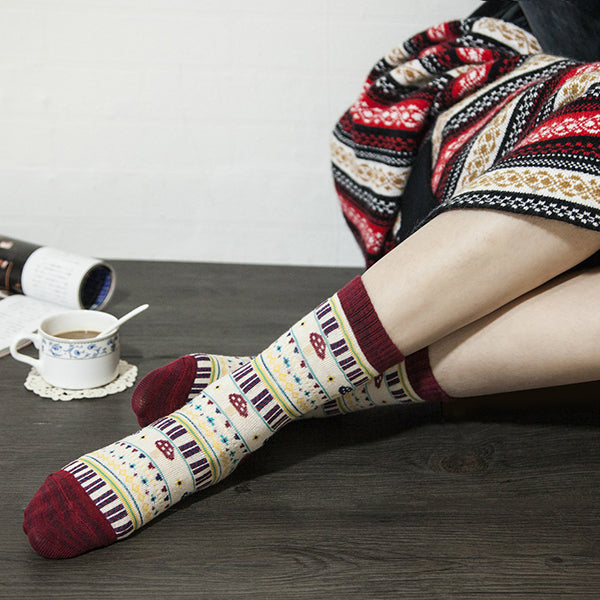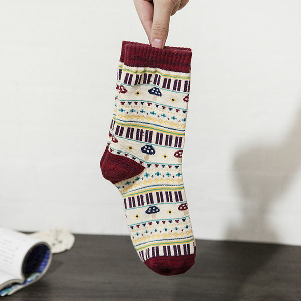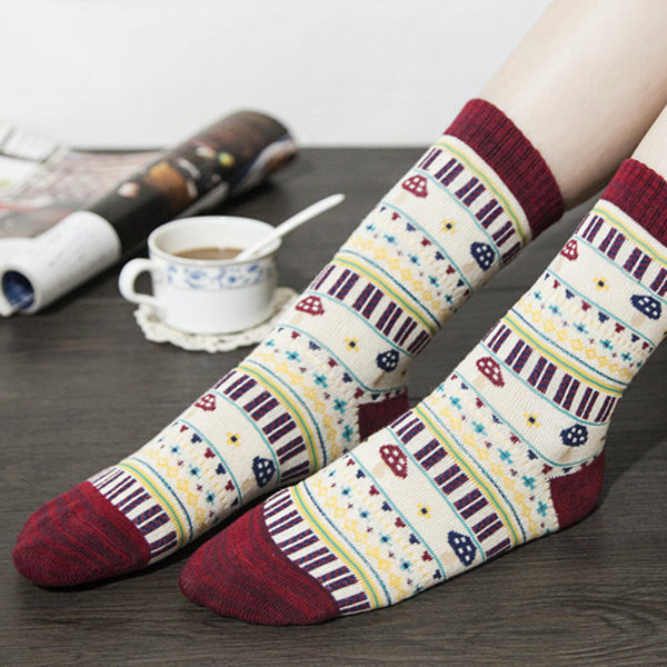 Women Autumn National Wind Cotton Socks Warm Comfortable Middle Tube Socks