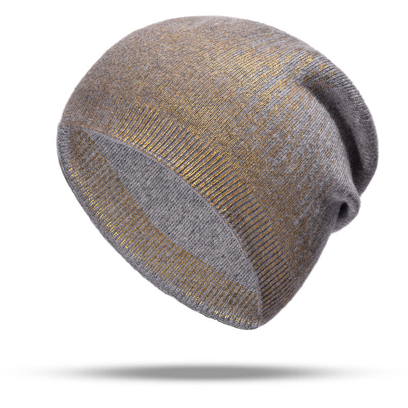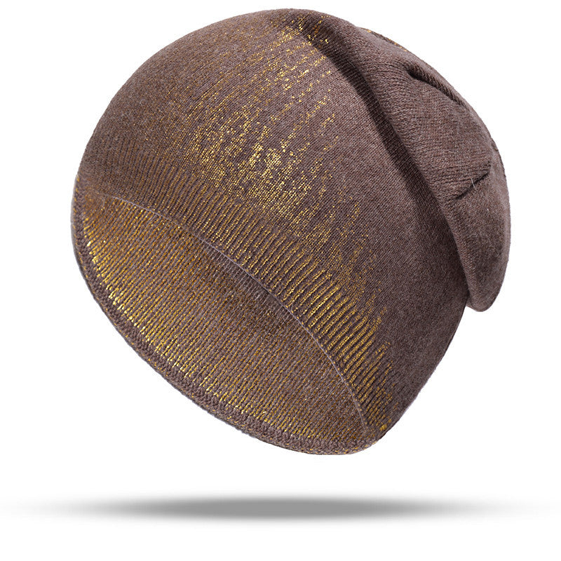 Women Double Layers Earmuffs Beanie Cap Outdoor Slouchy Skullcap Flexible