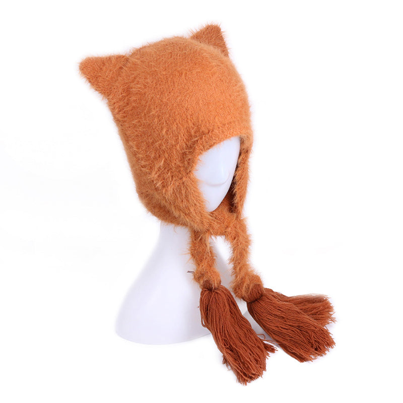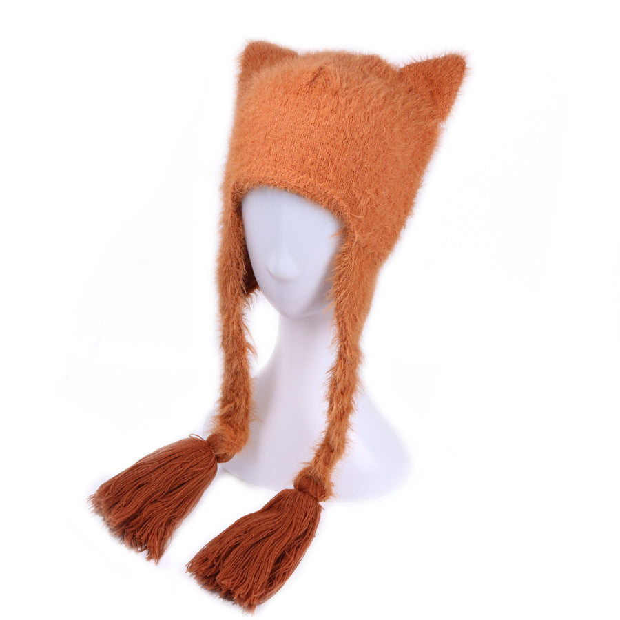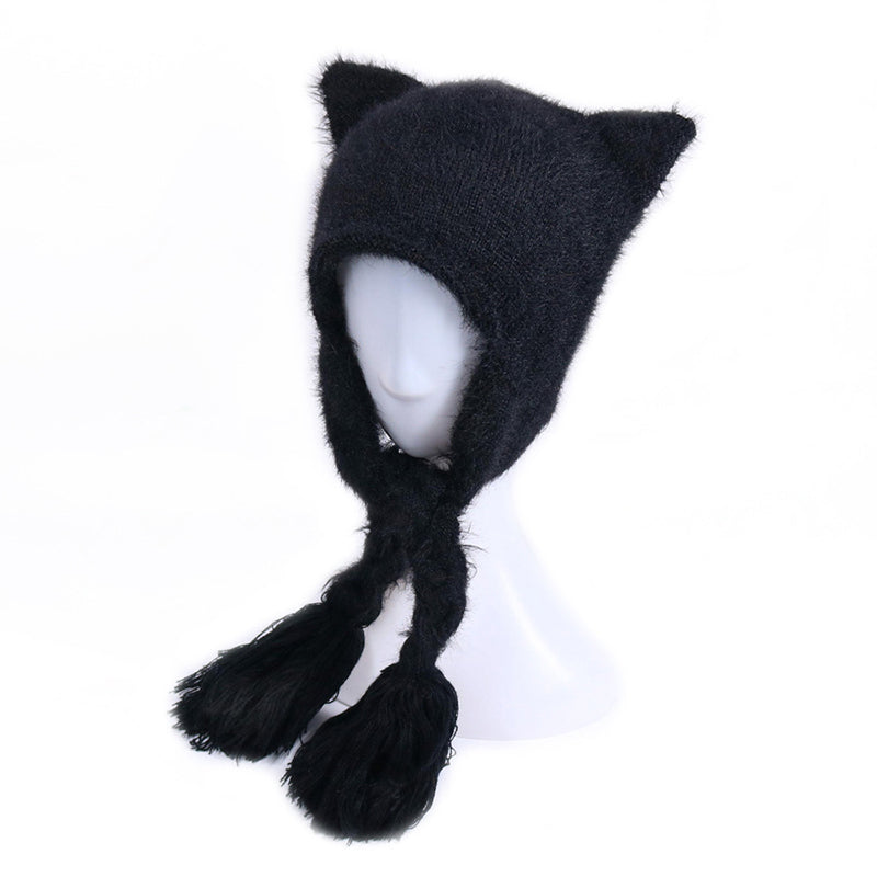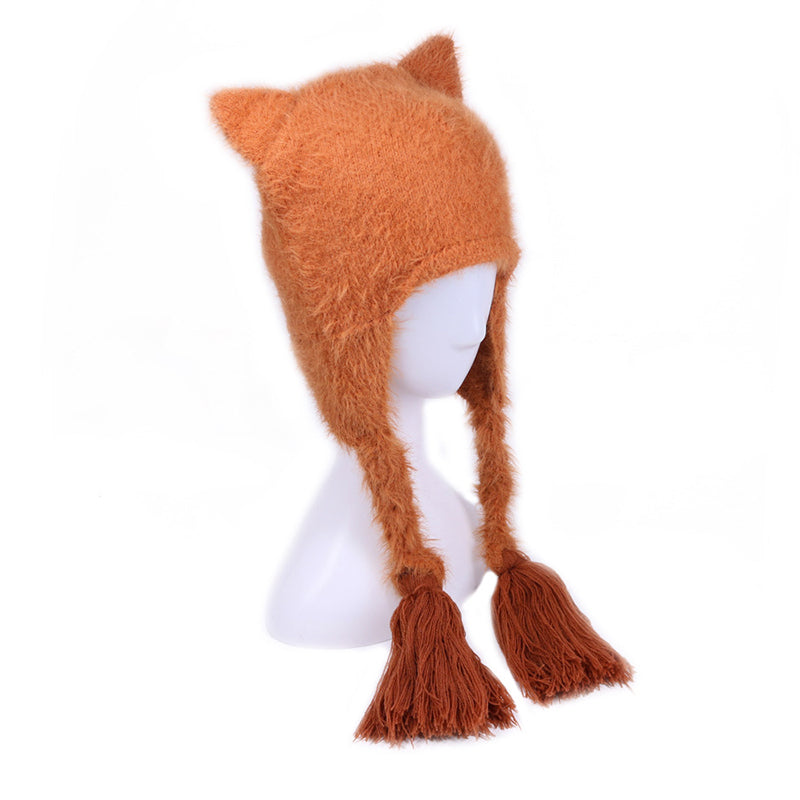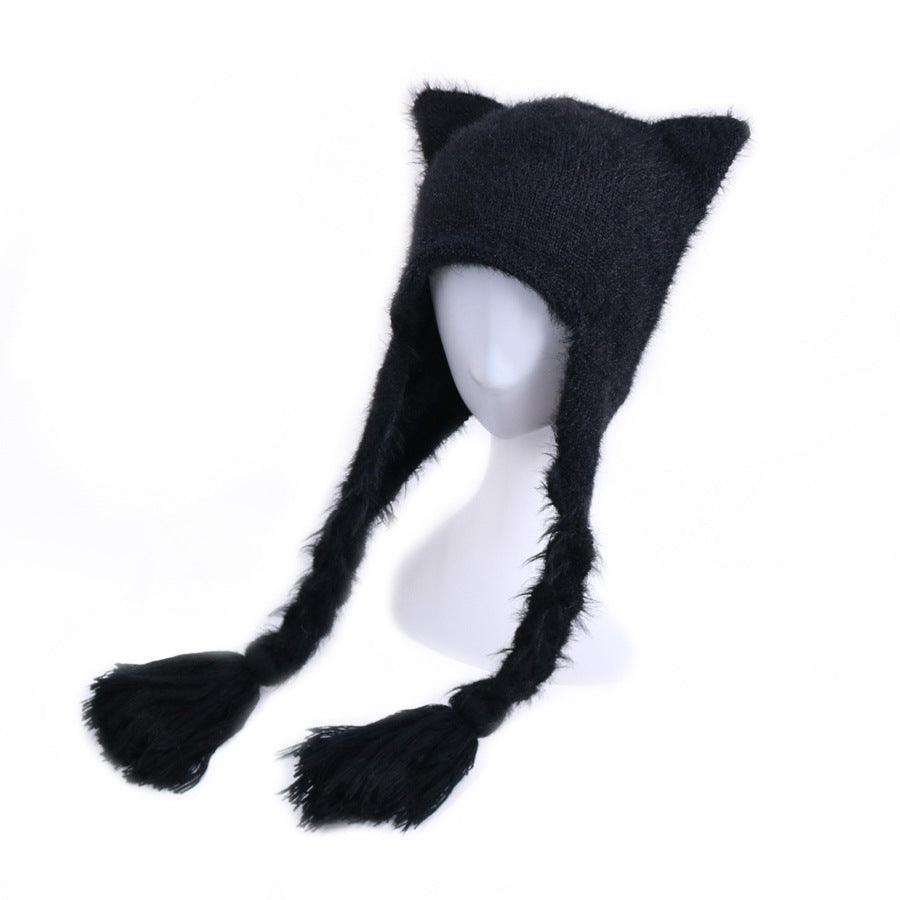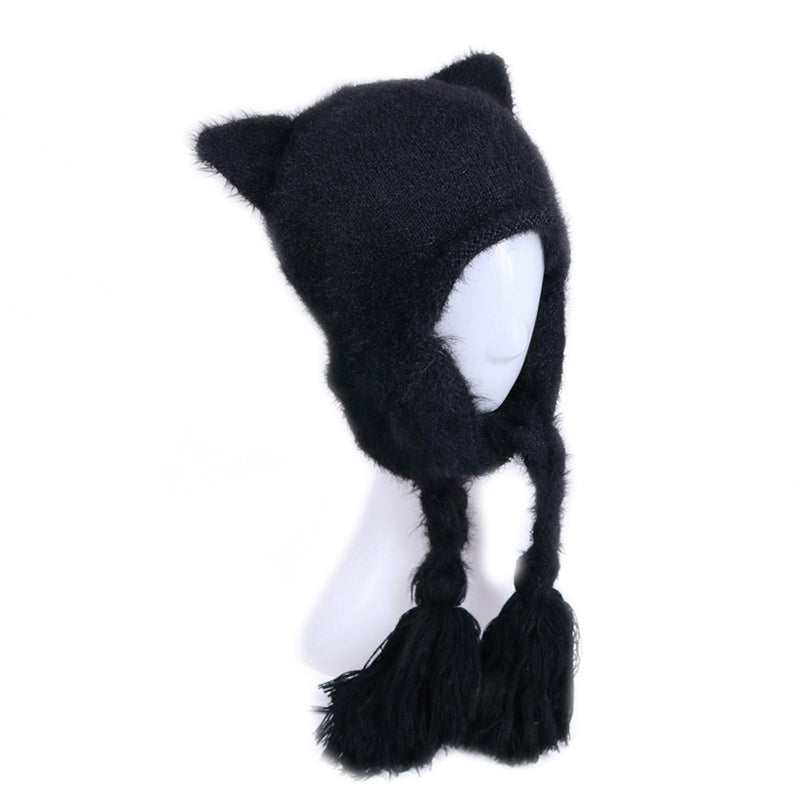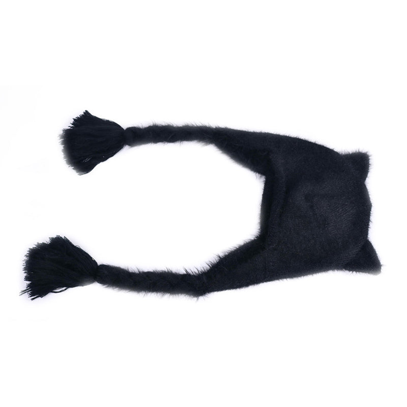 Women Unisex Artificial Mink Fur Knit Warm Long Earmuffs Cat Ear Cap Fashion Hat