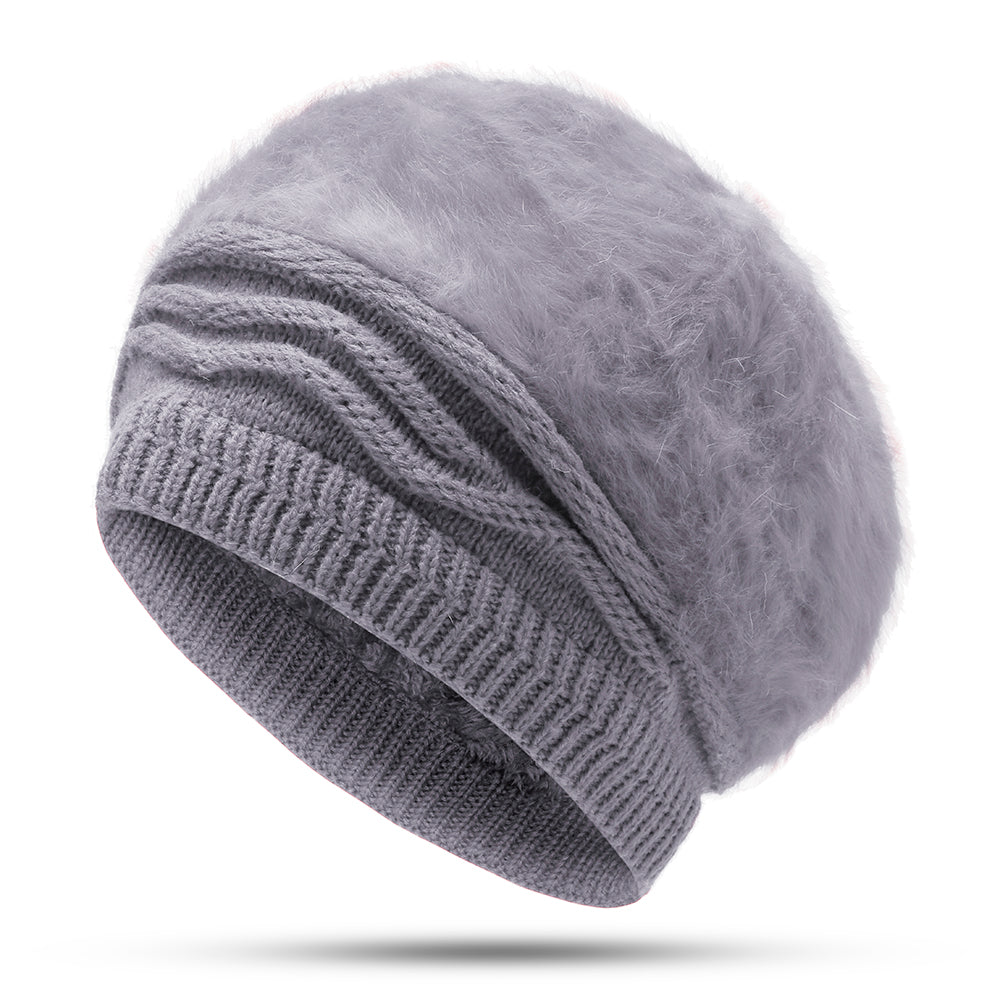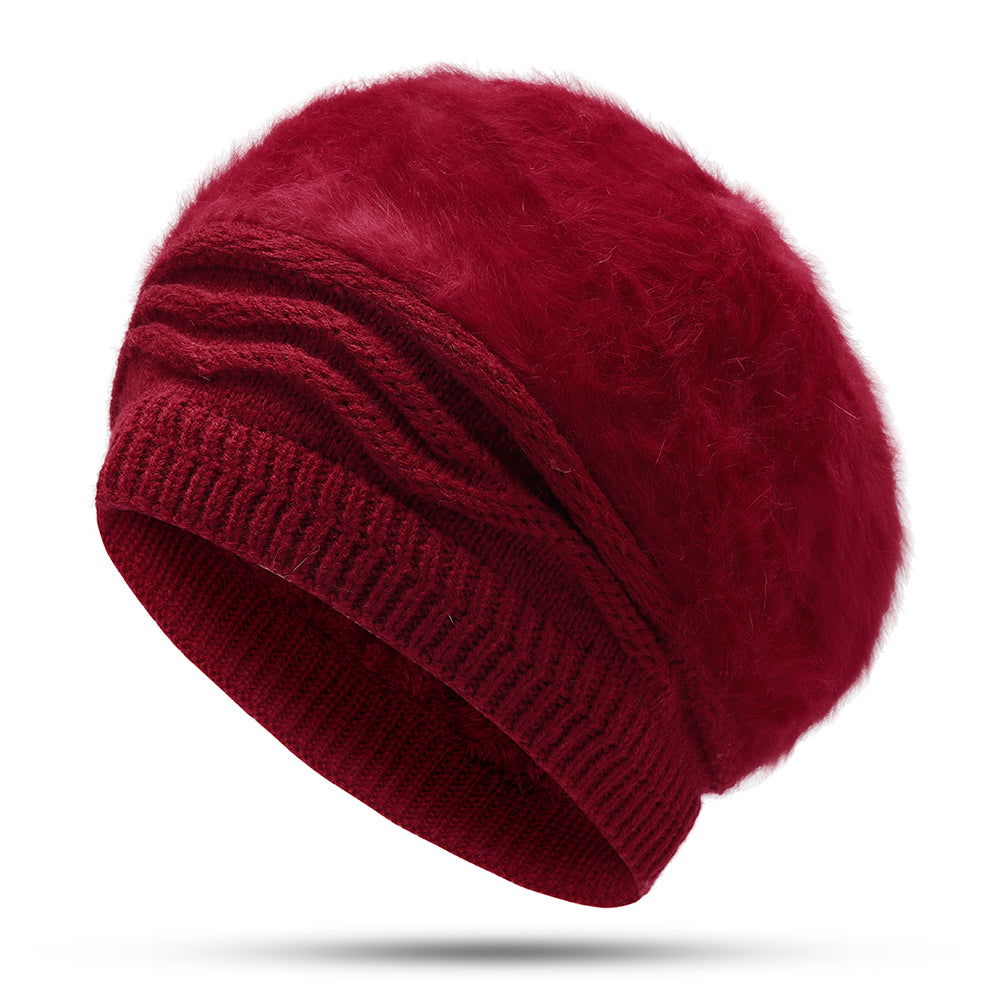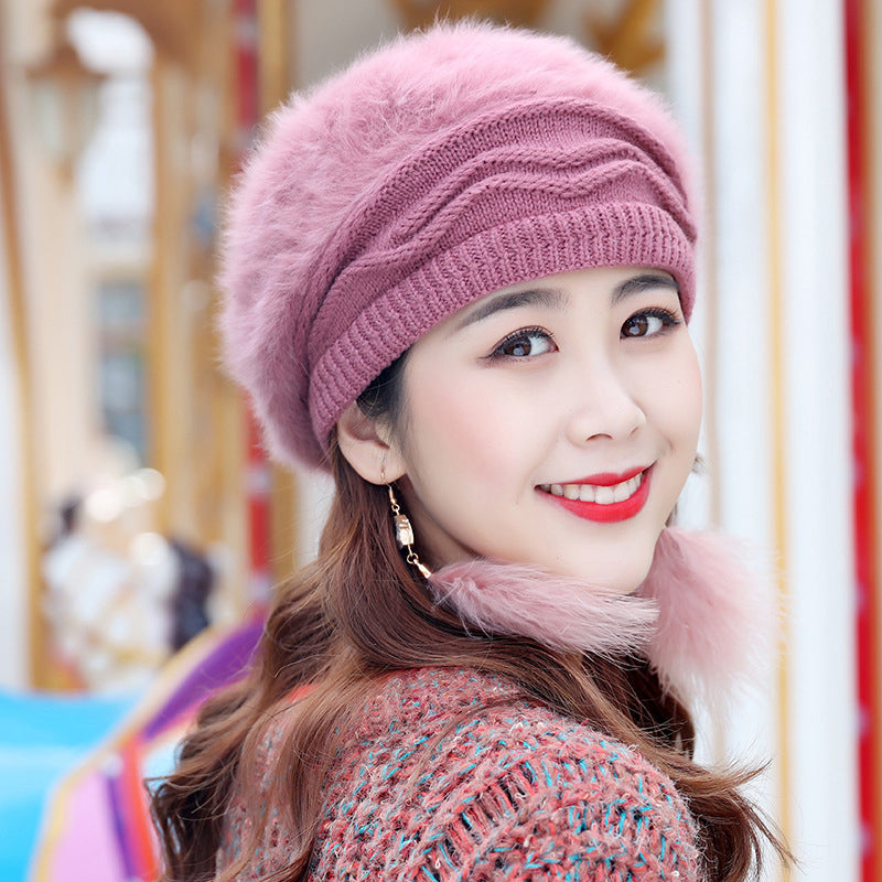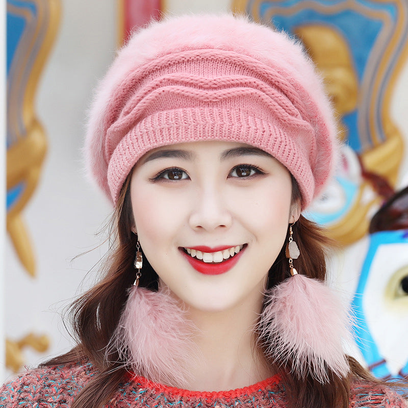 Women Vintage Artificial Rabbit Fur With Velvet Knit Hat Winter Warm Earmuffs Ski Beanie Hat