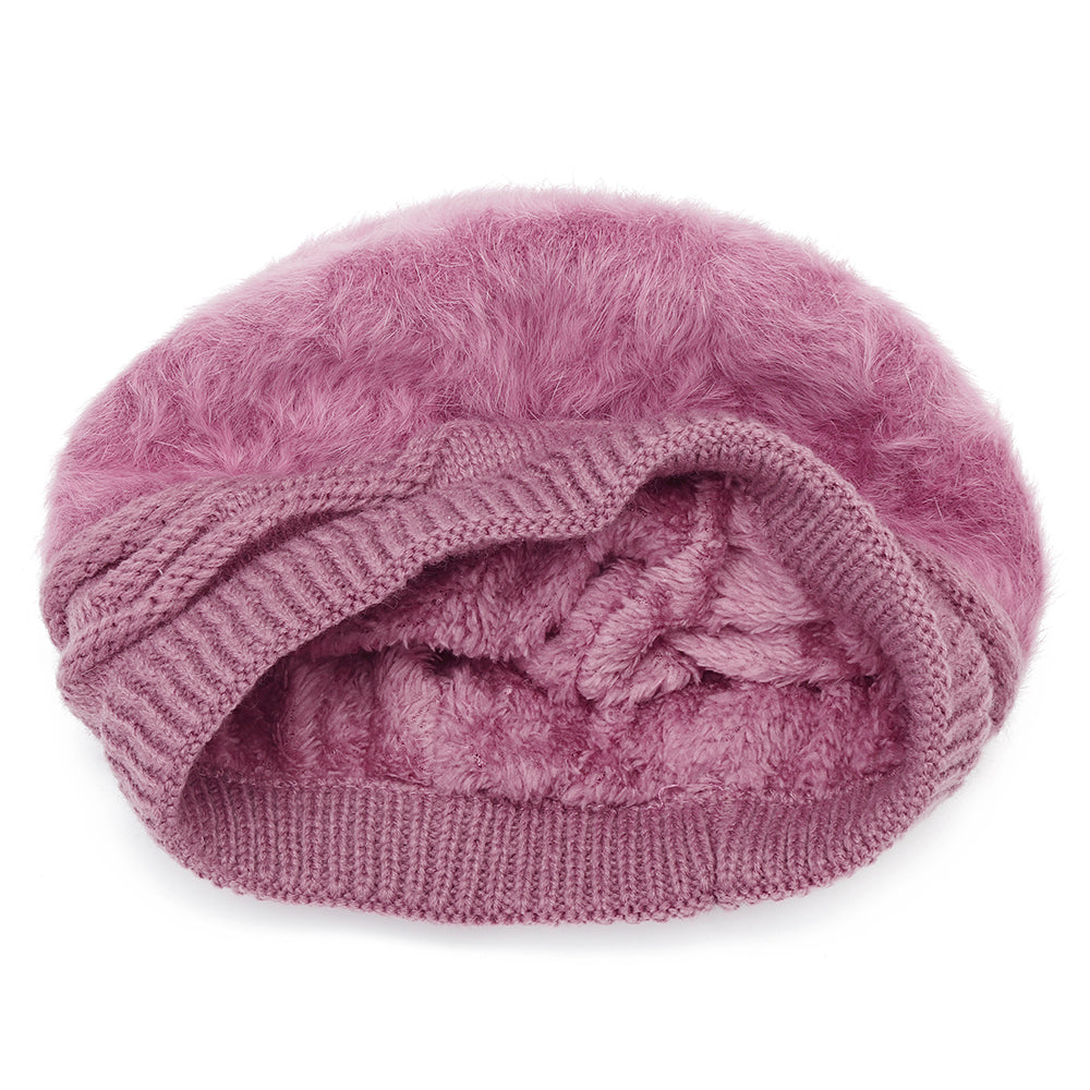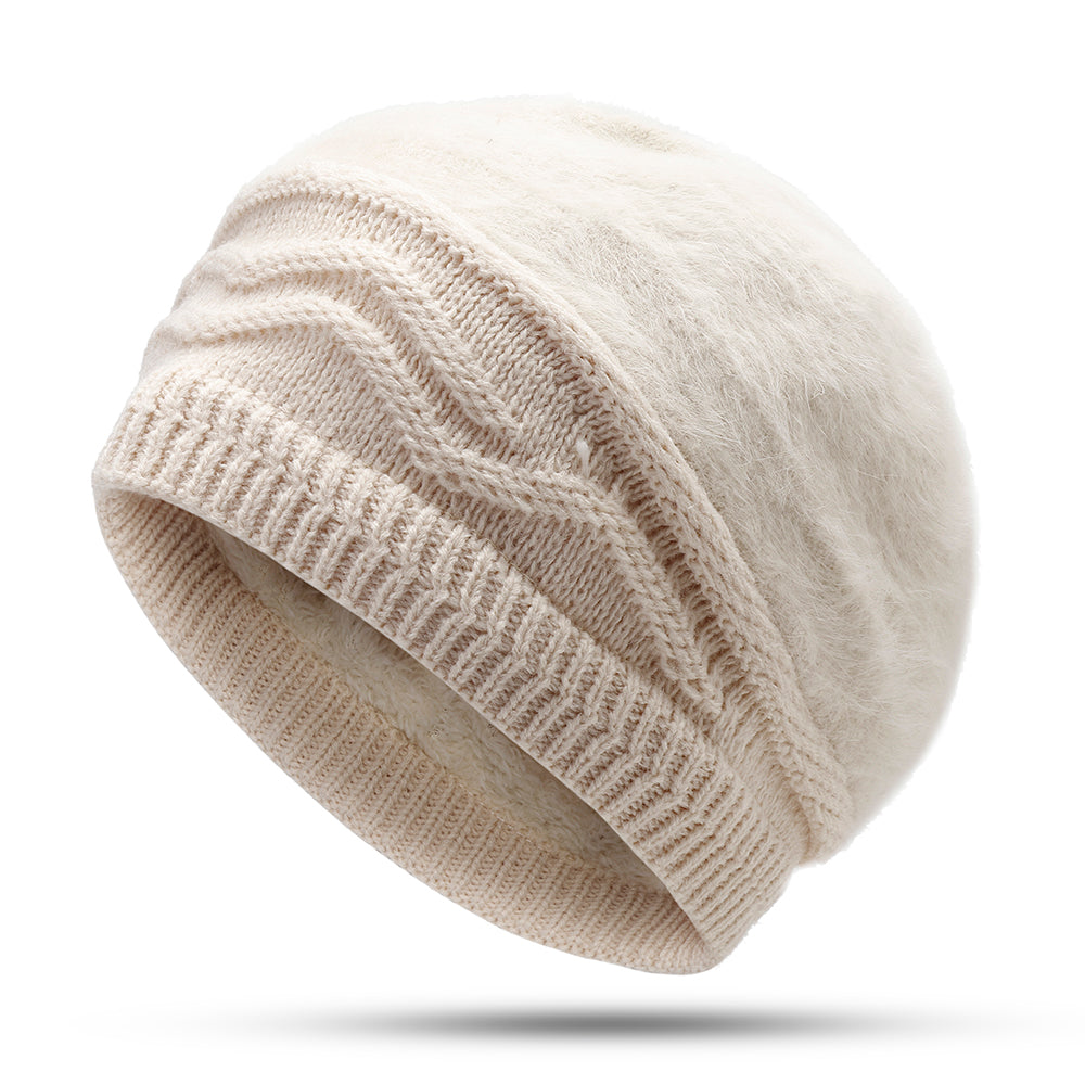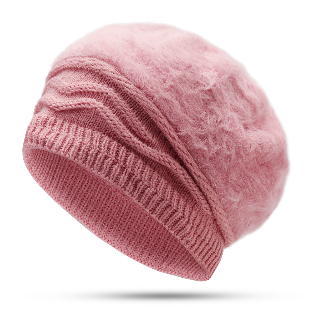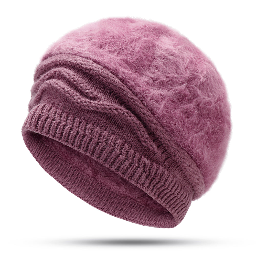 Women Vintage Artificial Rabbit Fur With Velvet Knit Hat Winter Warm Earmuffs Ski Beanie Hat