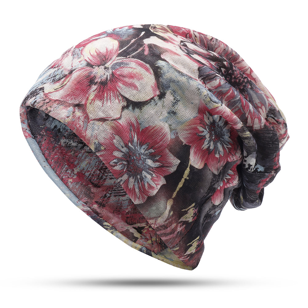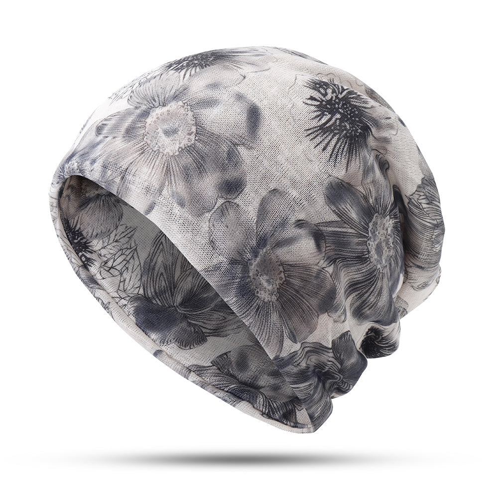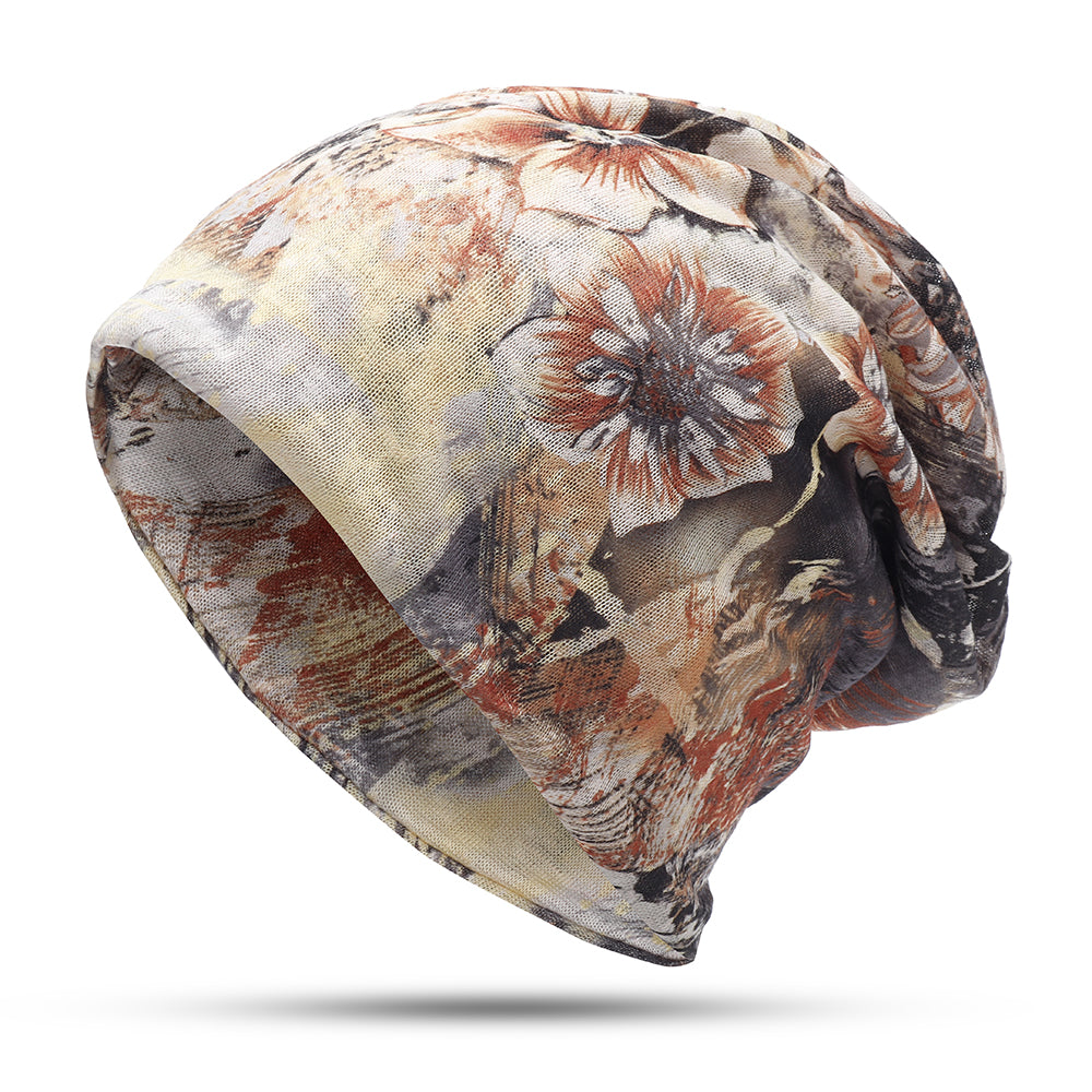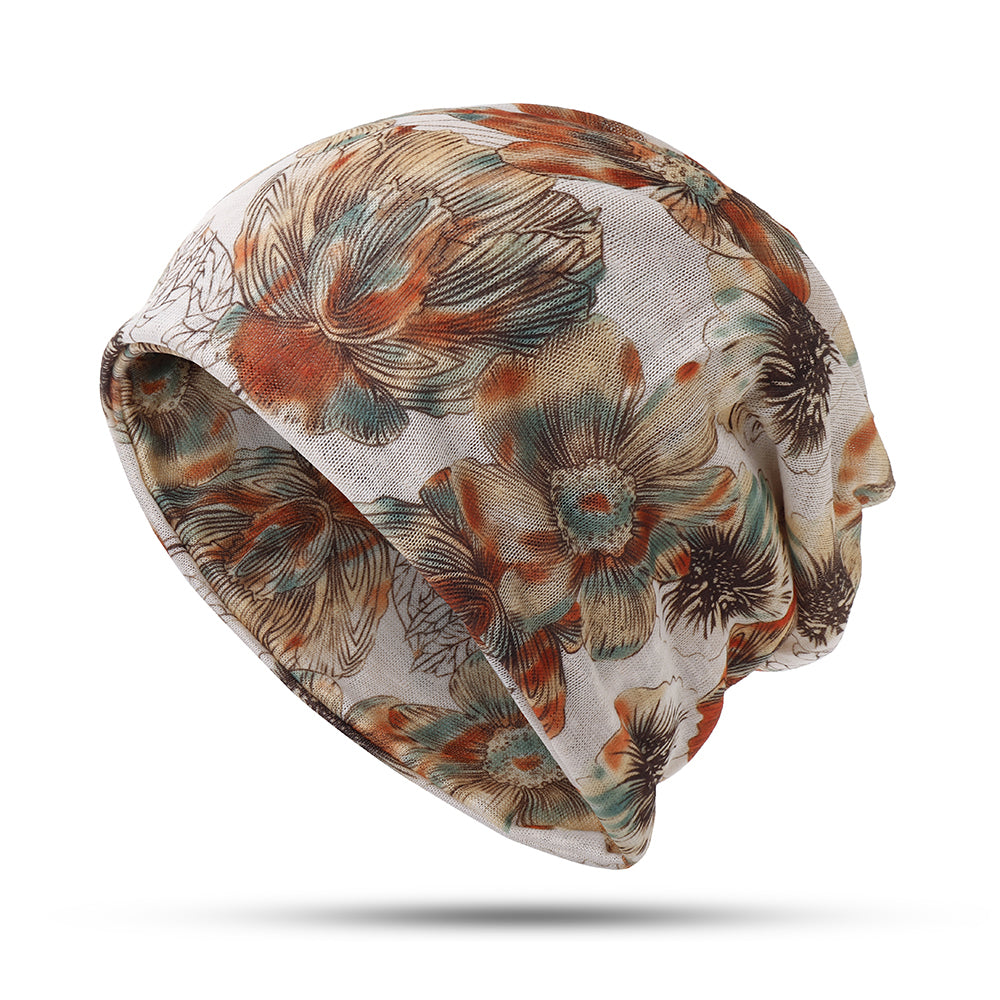Womens Ethnic Stripe Double Layers Beanie Hat Outdoor Slouch Brimless Cap