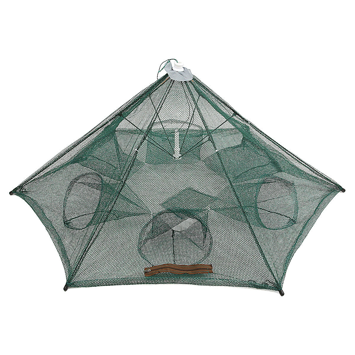 Feature: -100% new and high quality. -Disassembly simple automatic fishing cages, and an umbrella principle can be stretched out, no installation, easy to carry. -Easy to use, pull the top rope, the fishing nets will quickly open. -Special double zipper design for easy removal of fish, crab, lobster and crawfish.