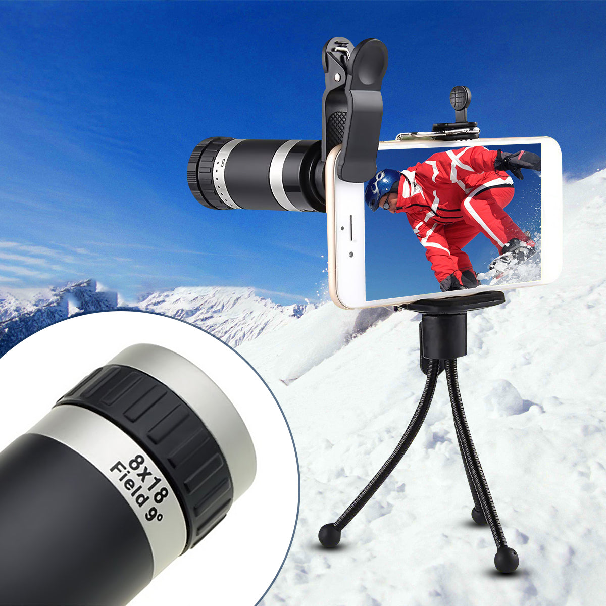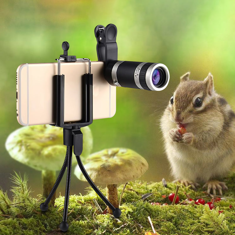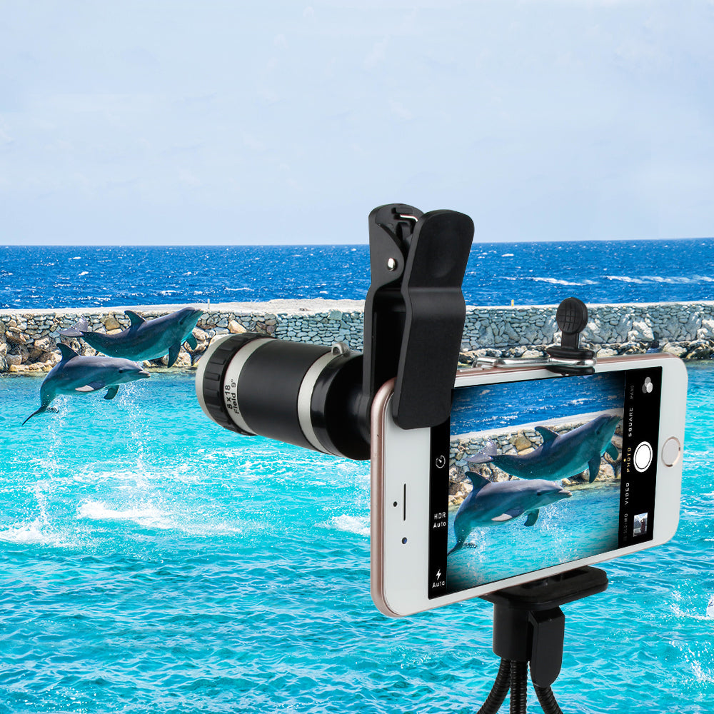 8x18 Mini Zoom HD Optical Telescope Camera Lens Monocular With Clip-on Tripod