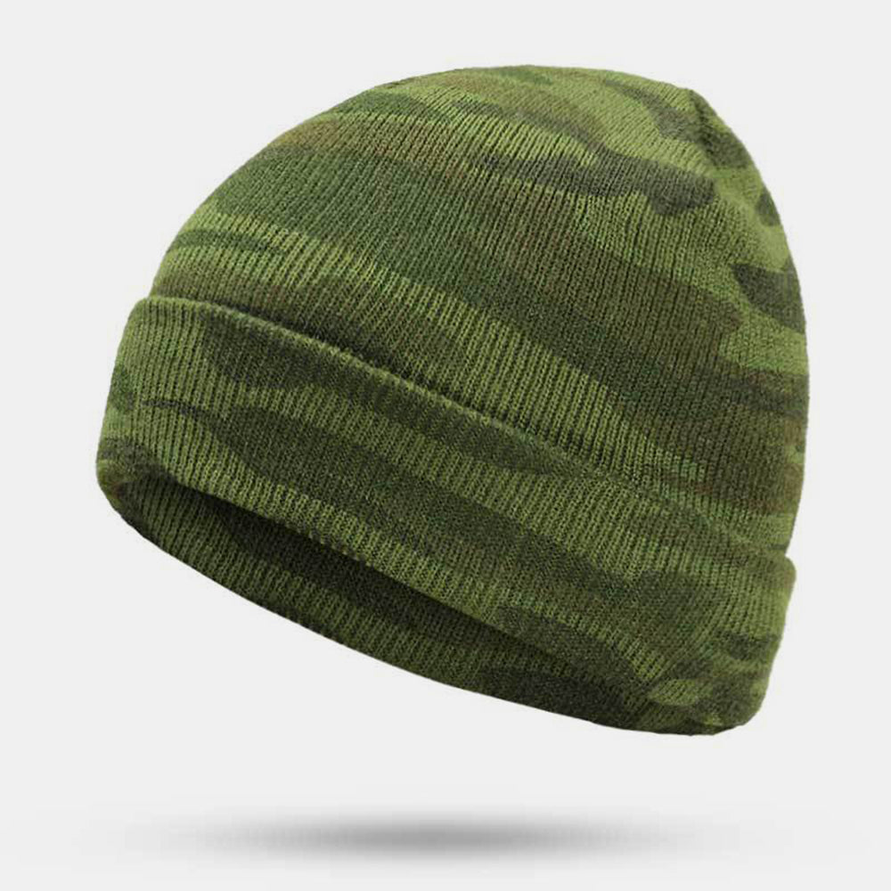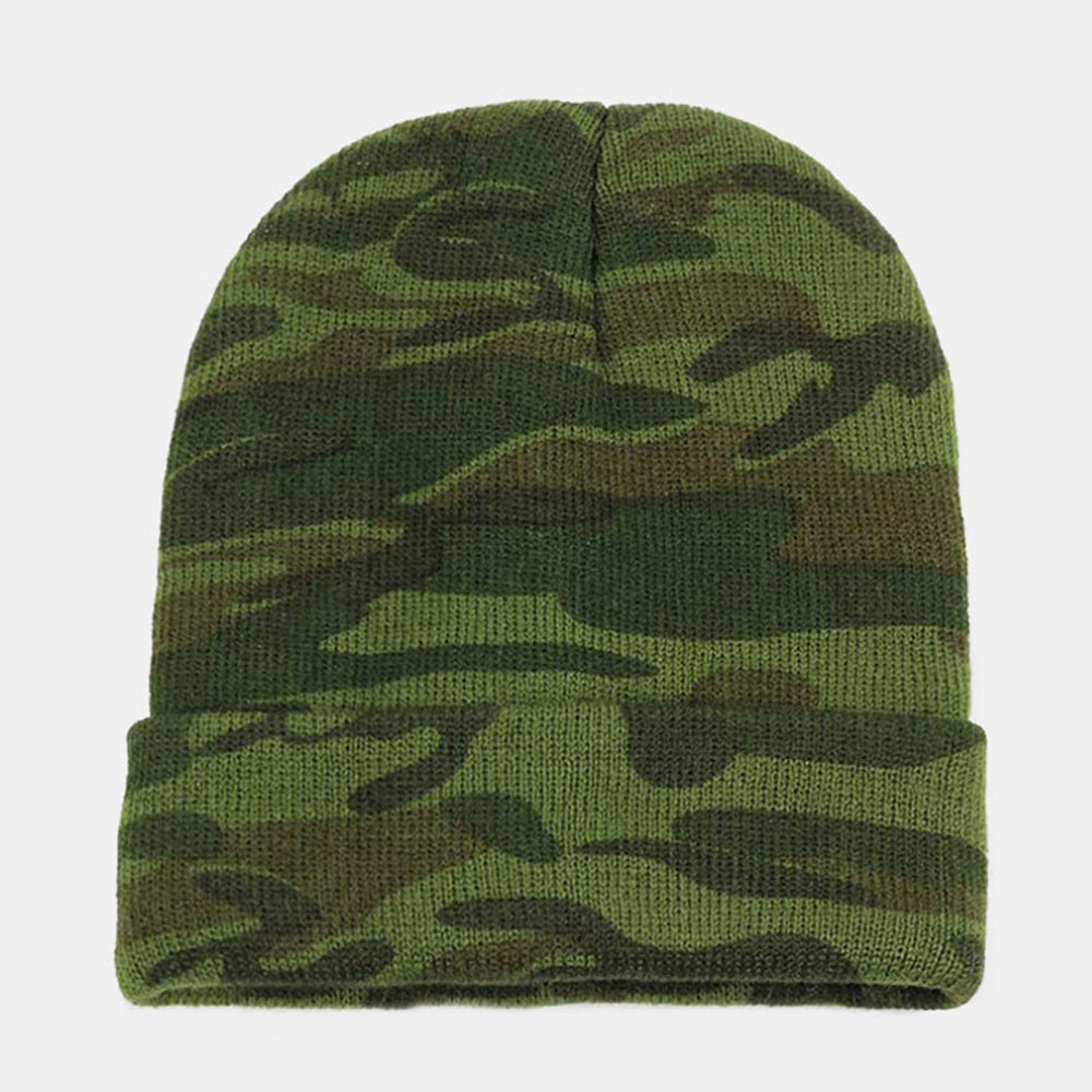 Men's Camouflage Wool Hat Pullover Hat Ear Protection Knitted Beanie Hat Windproof Warm Bib Hat