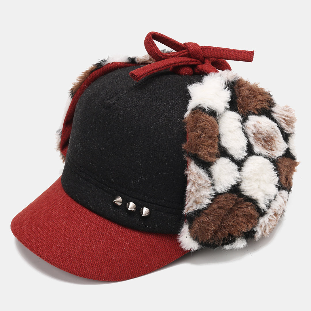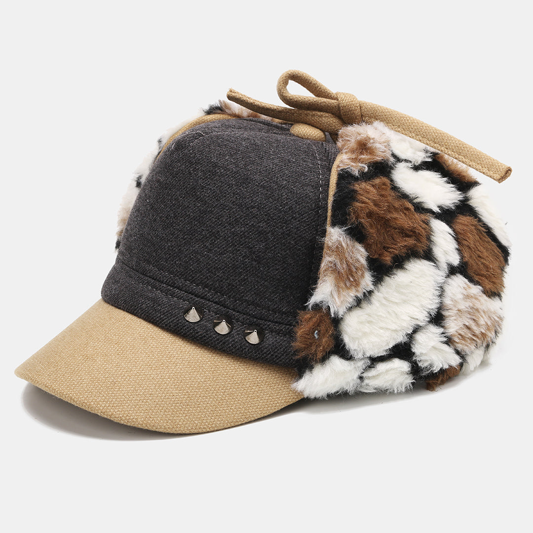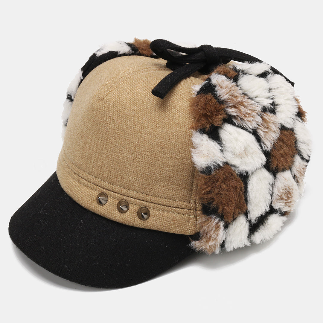 Mens Hairy Flat Top Hat Earmuffs Hat Outdoor Warm Military Army Caps Flat Hats