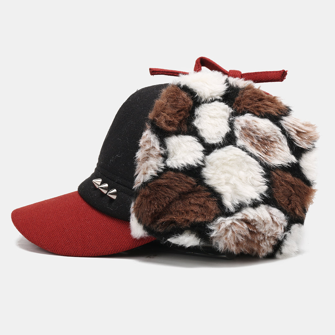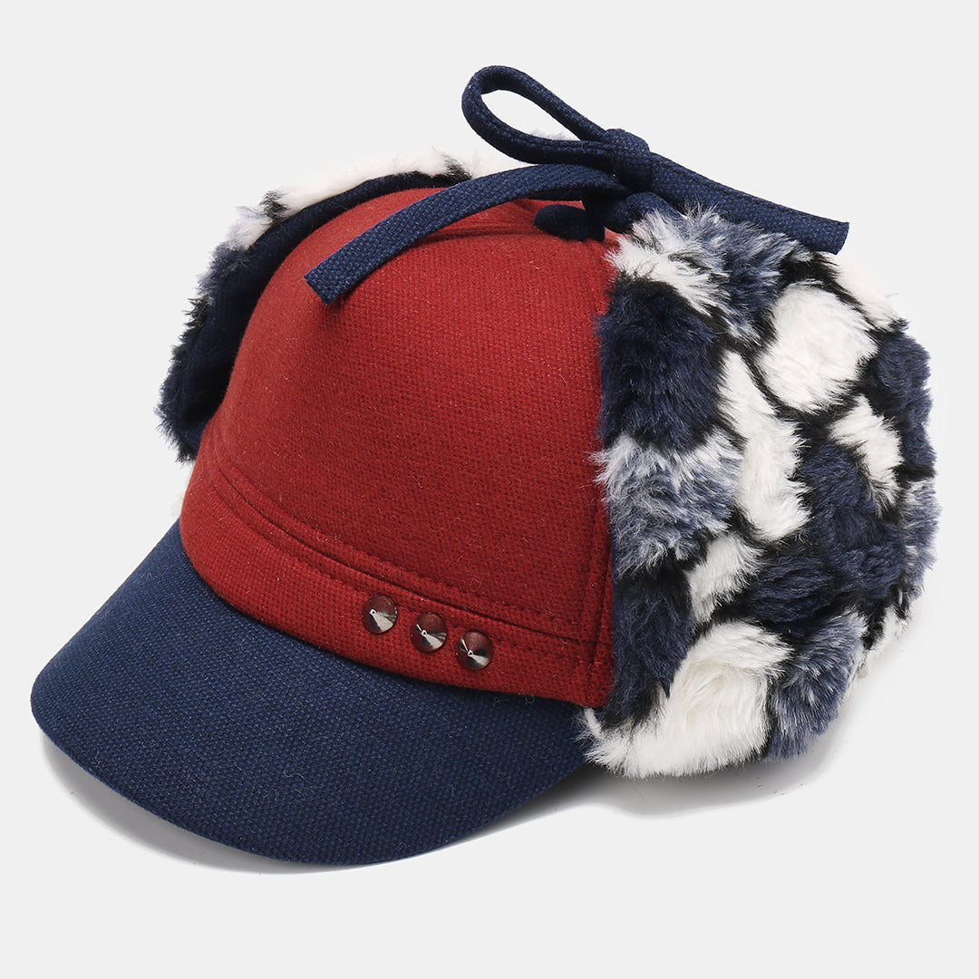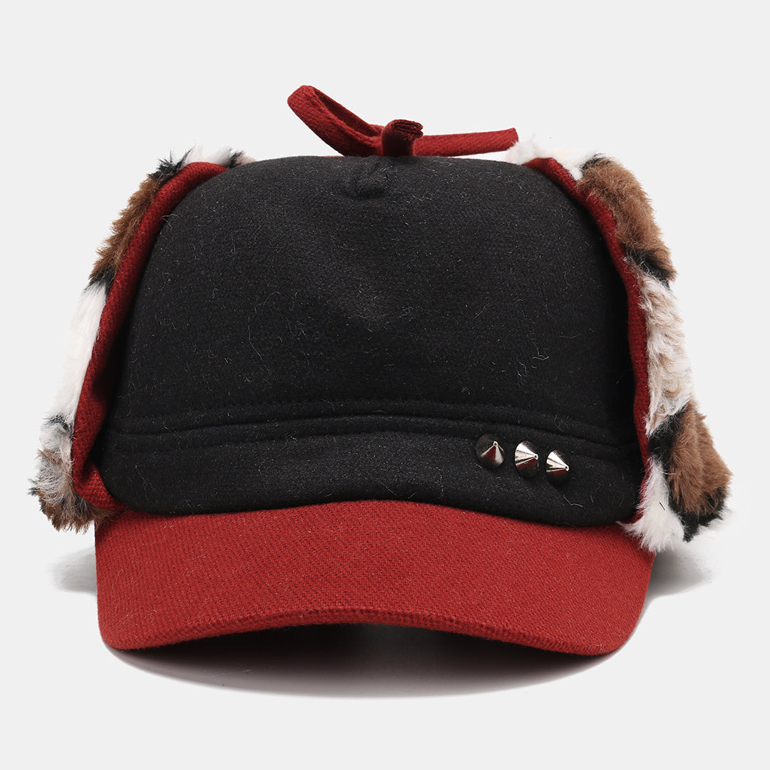 Mens Hairy Flat Top Hat Earmuffs Hat Outdoor Warm Military Army Caps Flat Hats