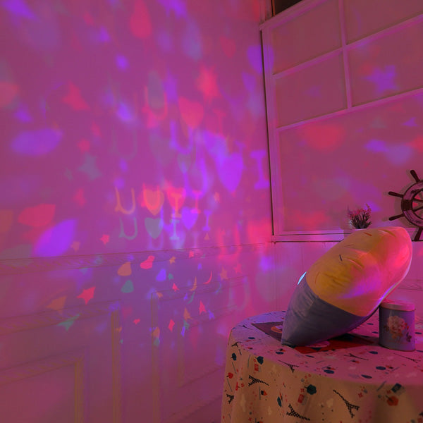Soft and comfortable, cute star, cake, heart shape, colorful LED light, they also have the characteristic of projection light and adding playing music, can give you a warm life.