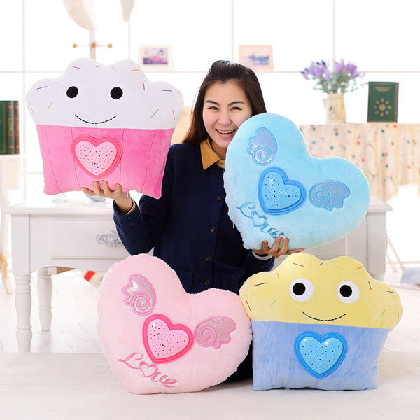 Colorful Plush LED Music Projection Star Cake Heart Shape Throw Pillow Home Sofa Decor Valentine Gift
