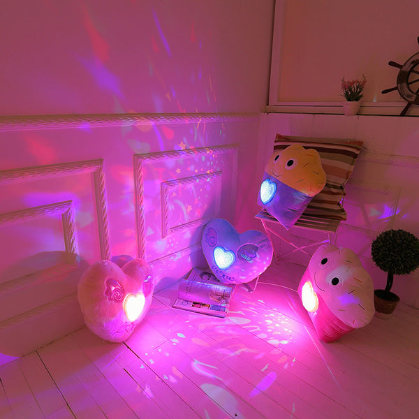 LED Projection Light Adding Music Star Cake Heart Shape Throw Pillow