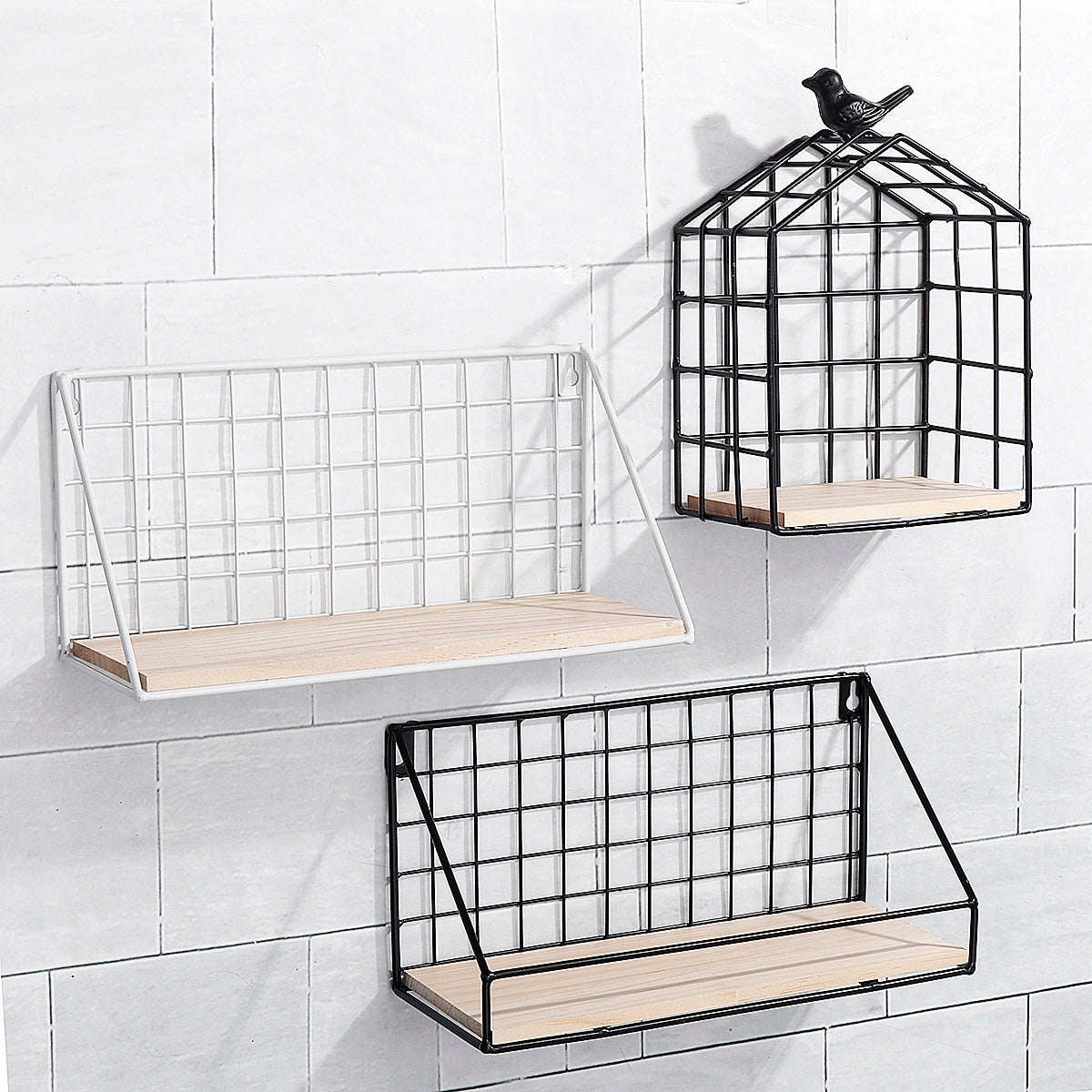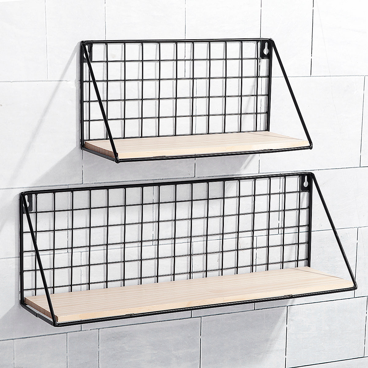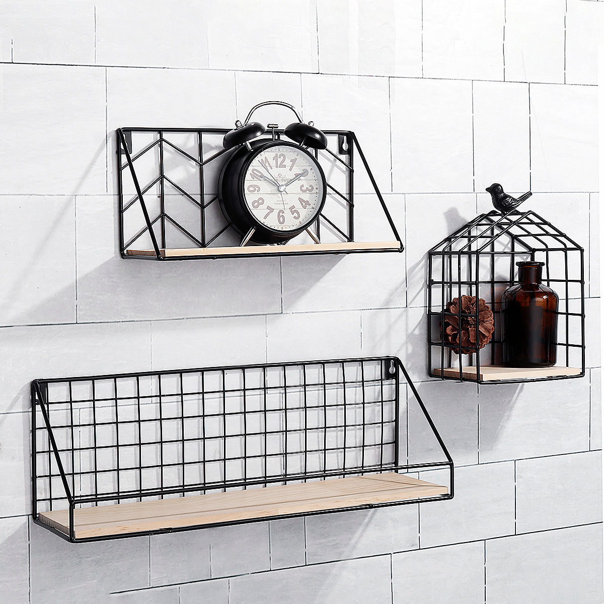 Wall-mounted iron wooden storage shelf, more convenient and practical.