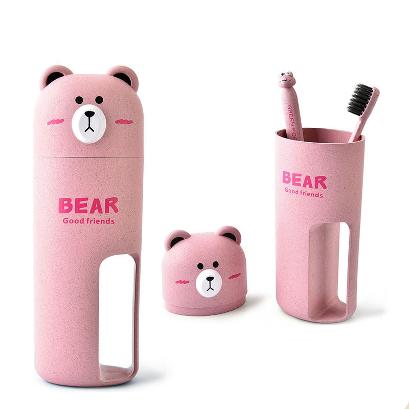 Honana Cute Bear Wheat StrawPortable 4 Color OptionsToothbrushOrganizerTravelWashing Cup Set 2 Toothbrushes Incuded