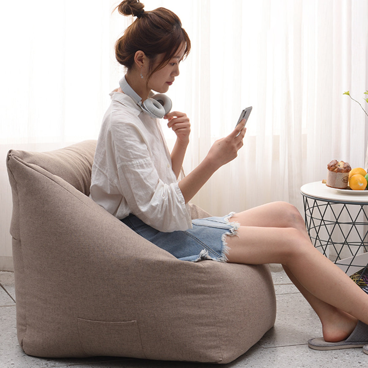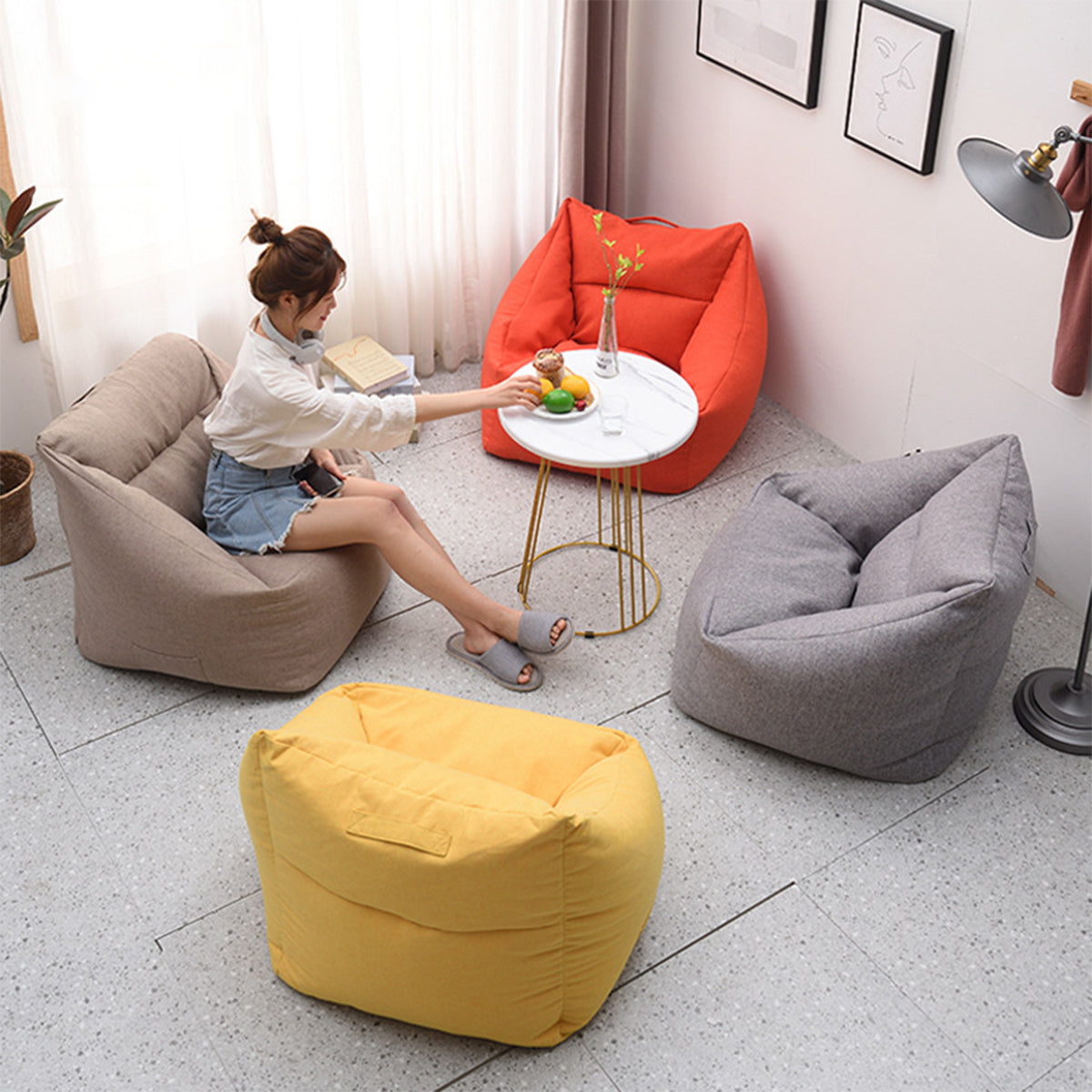 Features | ●Fine cotton and linen soft and breathable fabric. Seperate cover and filling for easy cleaning, cover machine wash or hand wash. ●We've upgraded the fabric to a thicker, softer, more luxurious material built to stand the test of time. With this cozy bean bag cover, the bags are sure to be your new favorite place to chill out. ●Premium zippers, and hand selected fabrics that are double stitched for maximum strength and durability. Covers are soft, supple and sensuous to the touch. Yet it's also resistant to stains and discoloration. ●Washer and dryer safe for your convenience. Extra long zipper for easy removal.Our Premium Micro Fiber covers are the perfect blend of comfort, ease of care and durability. |