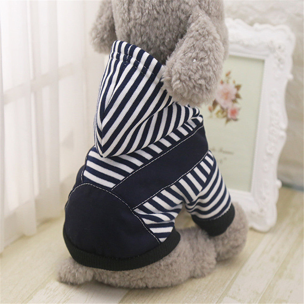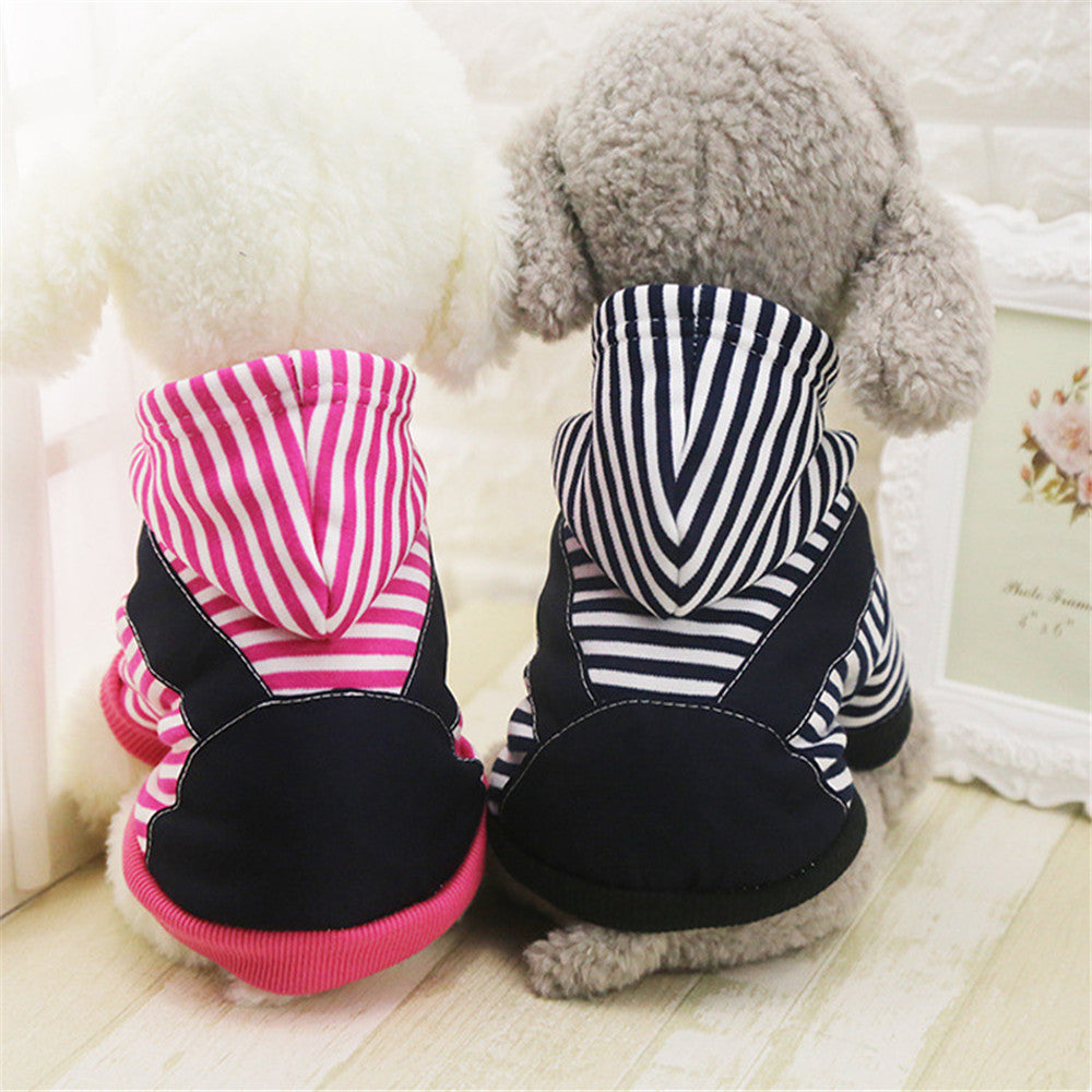 Pet Dog Winter Cotton Clothes Warm Soft Straps Stripe Color Hoodie Coat With Hat In All SizeThis Coat is made of 100% Cottom, very soft and warm, keep your pet to be comfortable.